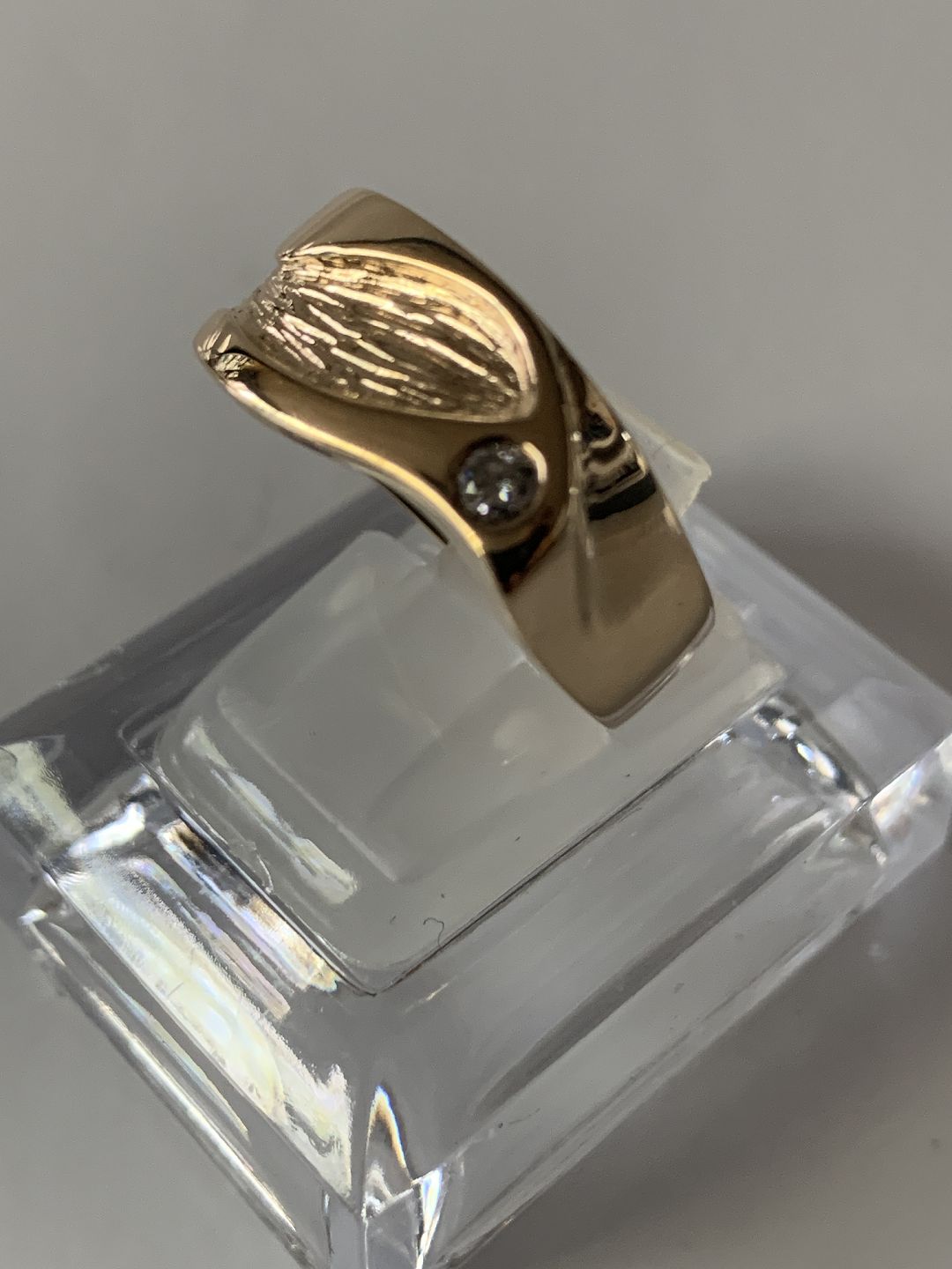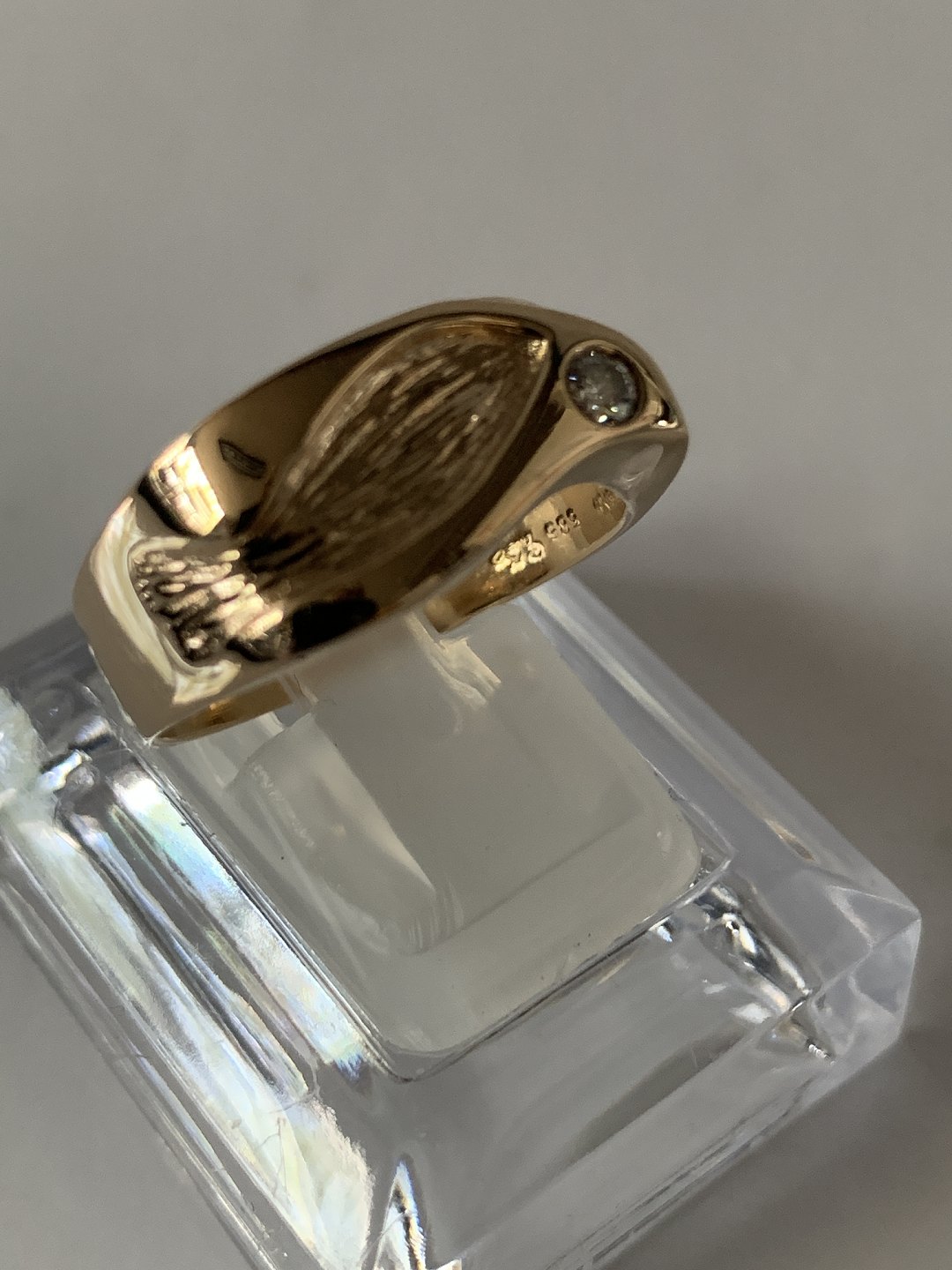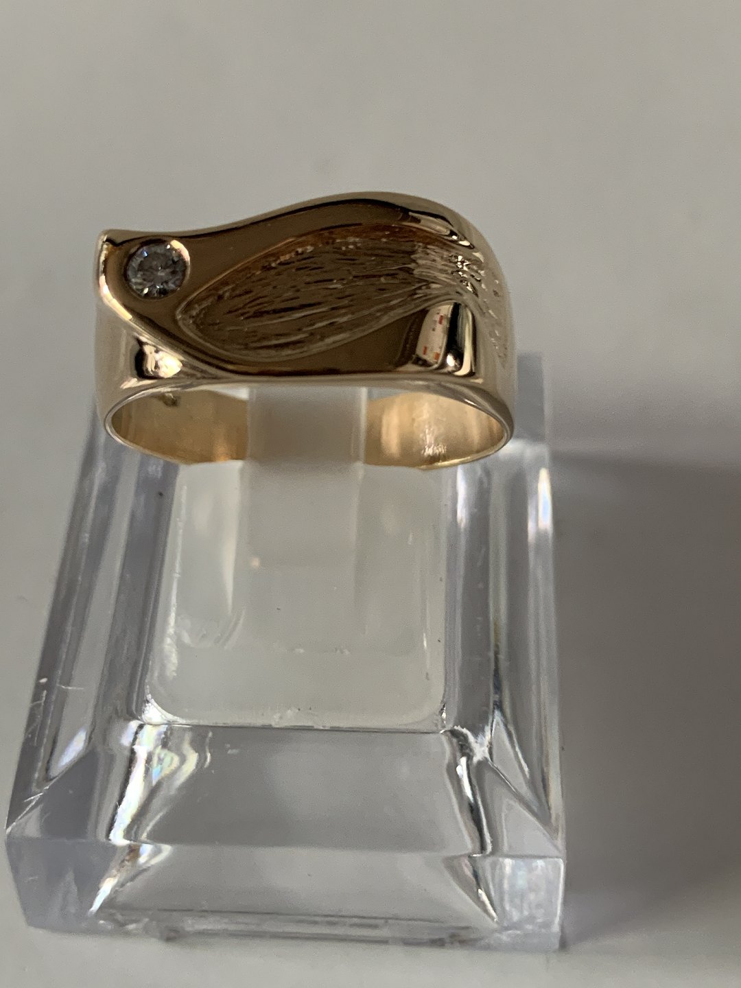 14 karat guldring, med indlagt brillant. Størrelse. 61