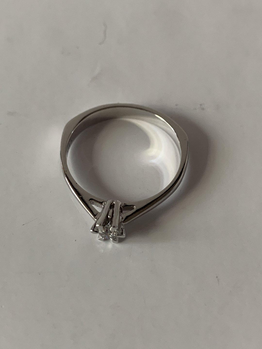 Prinsessering i 14 karat Hvidguld, med indlagt brillant. Størrelse. 54