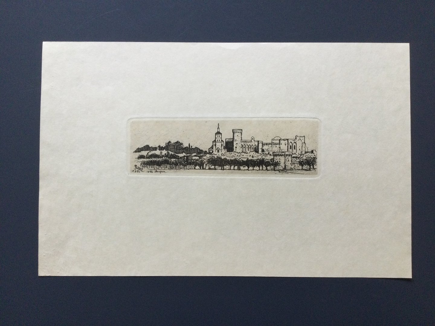 Radering af Peter Tom-Petersen - Parti fra Avignon 1921-22.
