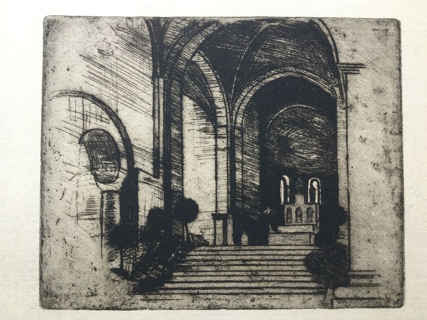 Radering - Stefan Viggo Pedersen - Interiør Lund Domkirke 1926.