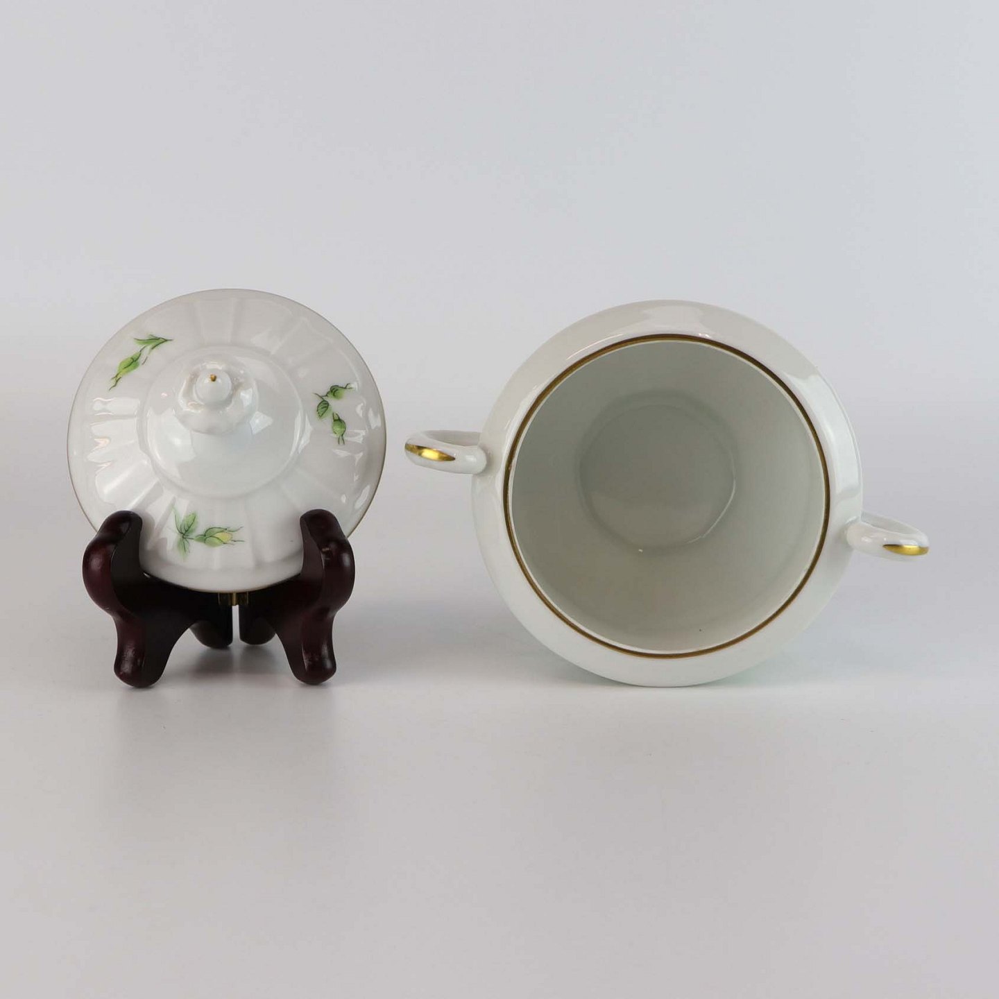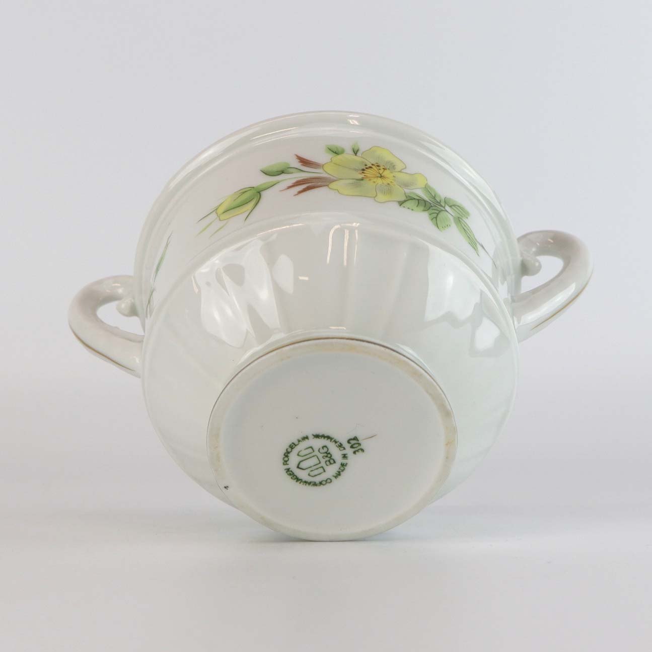 Lågkrukke til sukker i porcelæn fra stellet Klitrose. Nr. 302