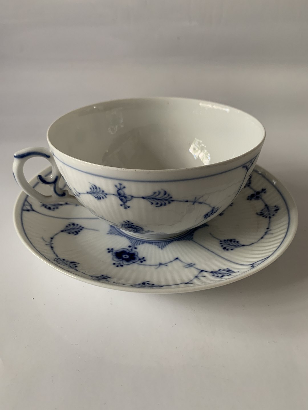 Royal Copenhagen Musselmalet Fluted, teacup with matching saucer.