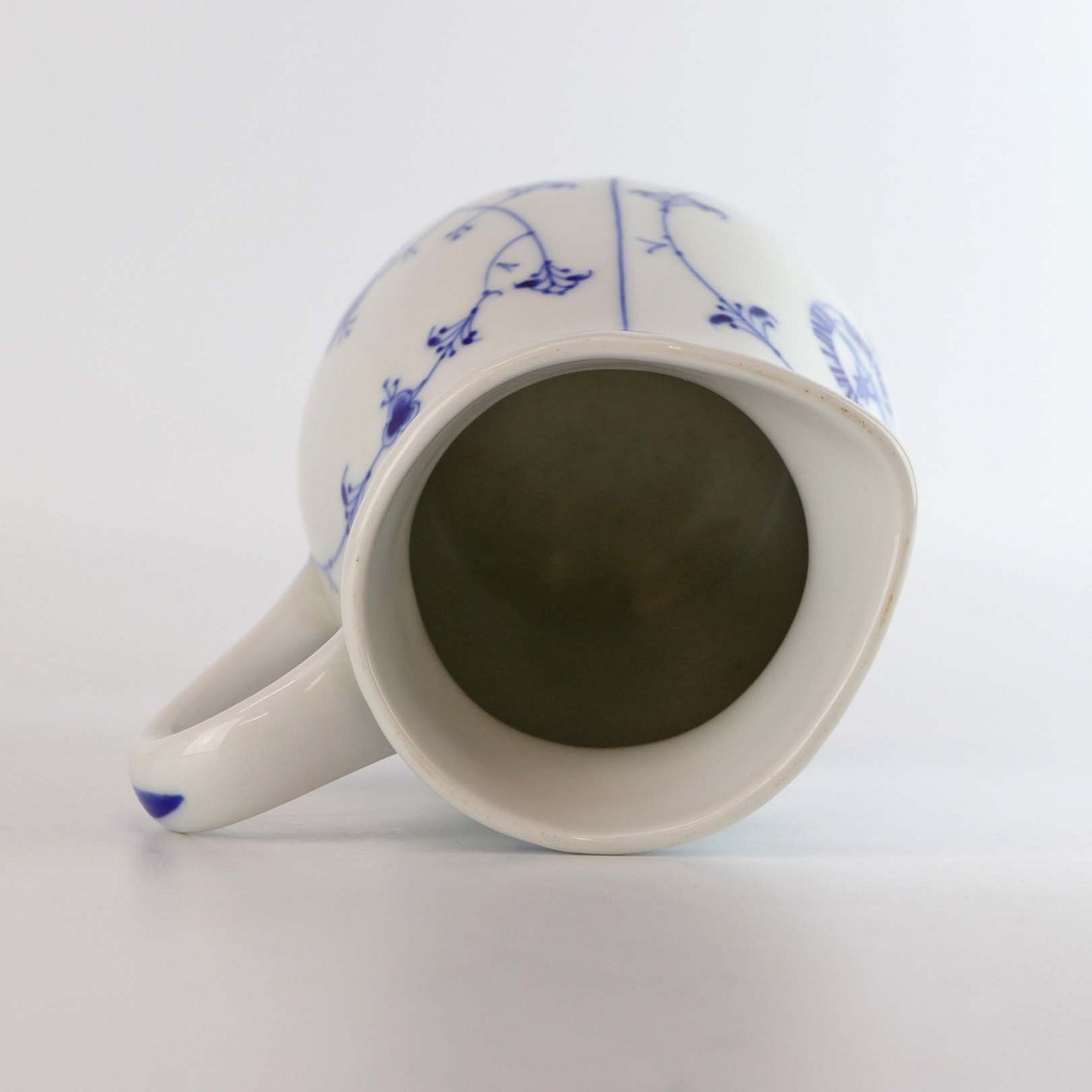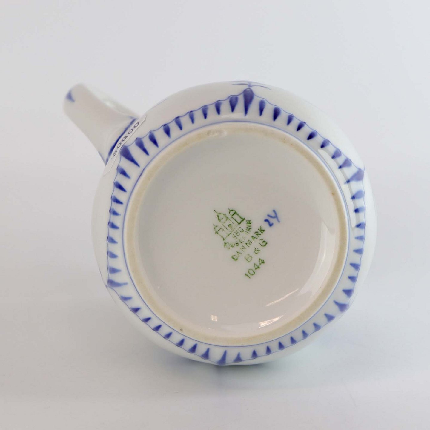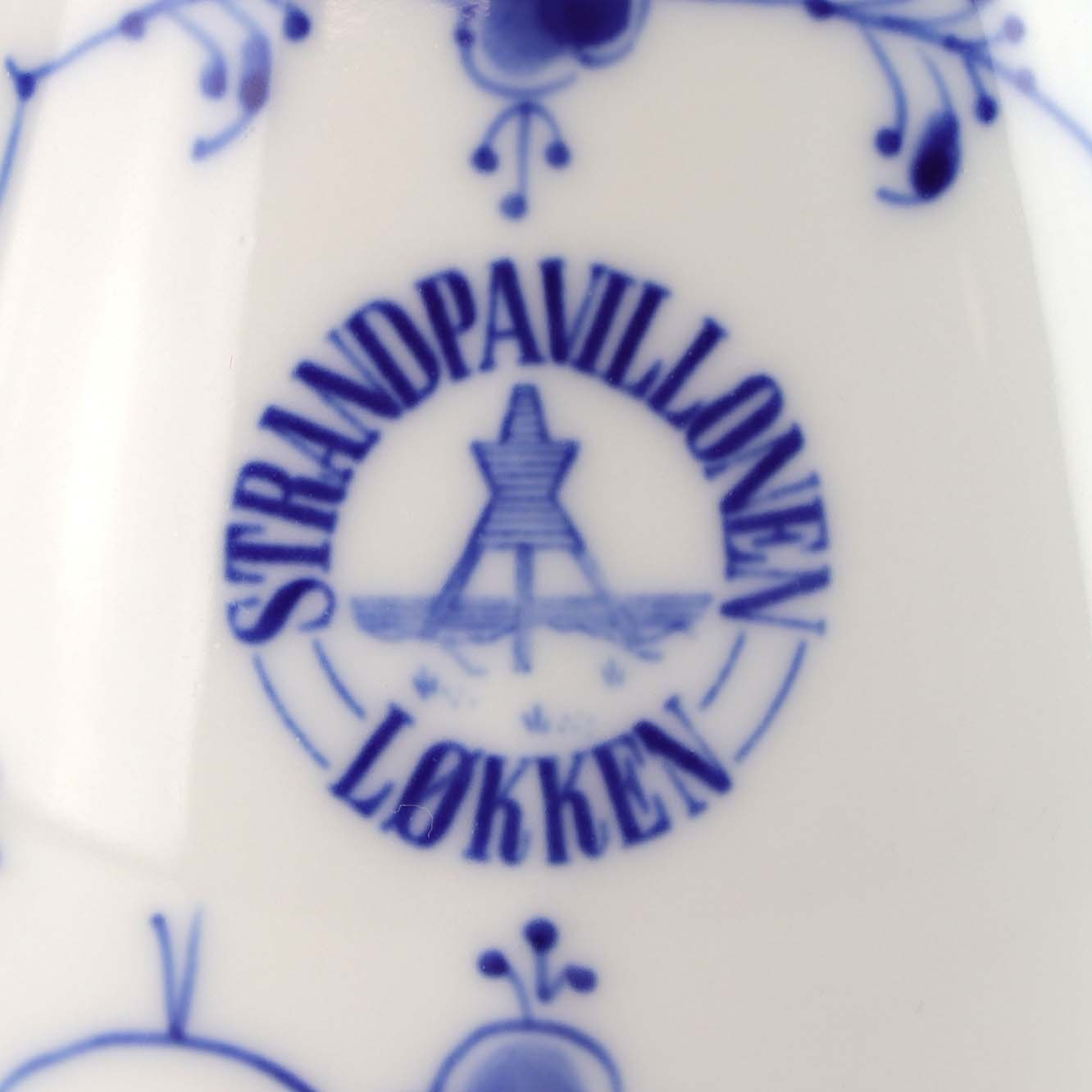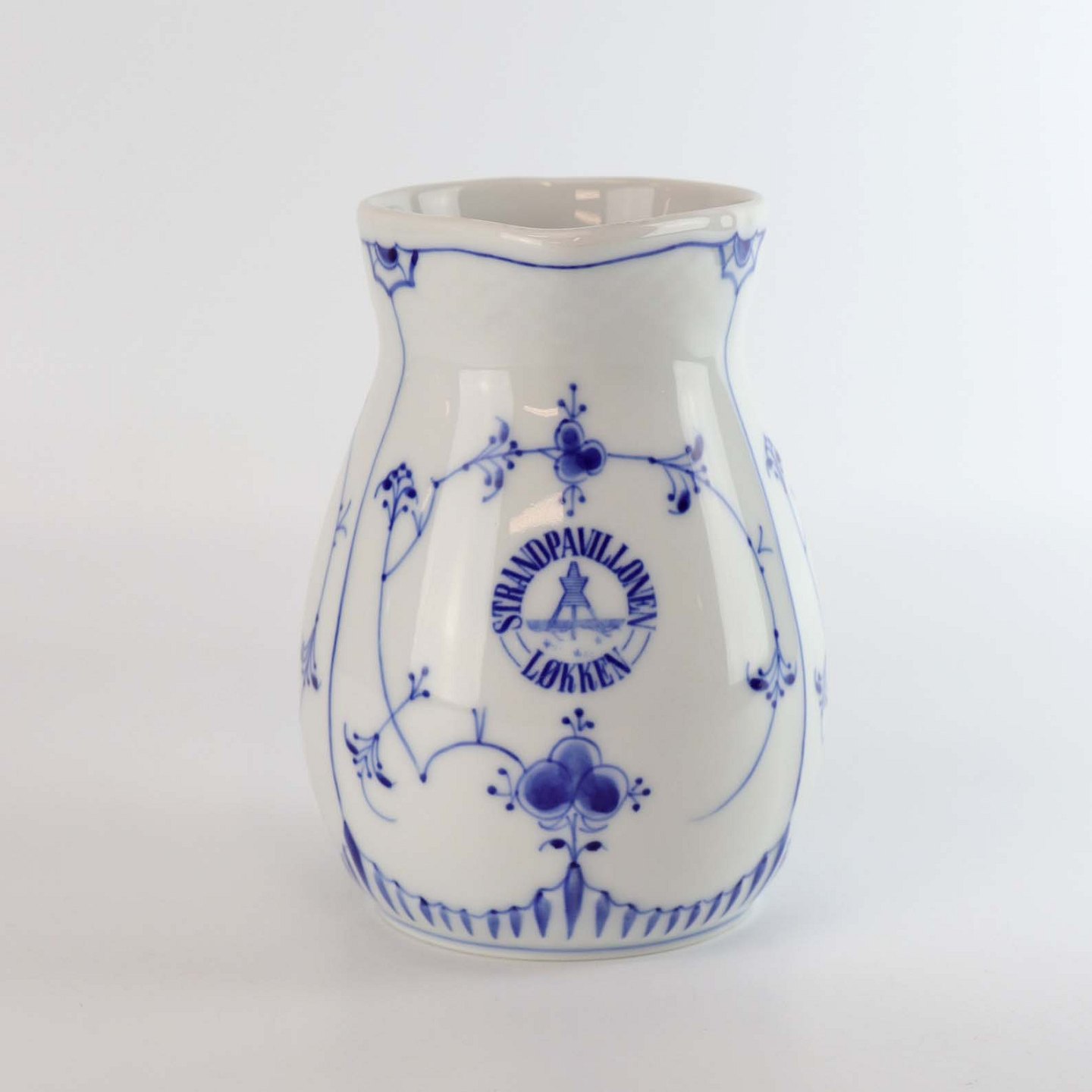 Mælkekande i hotelporcelæn fra stellet Blåmalet nr. 1044. Kanden er mærket Søpavillonen - Løkken.