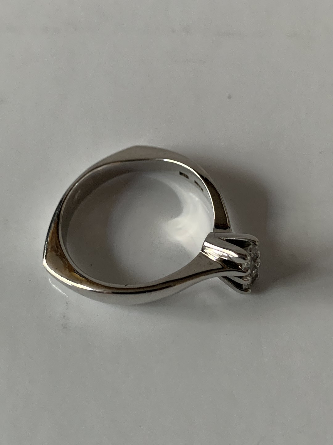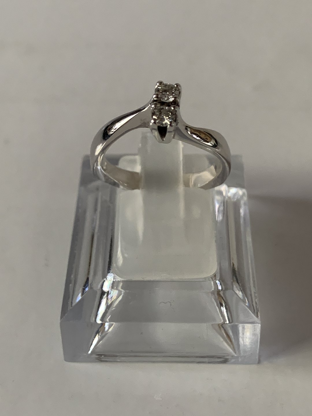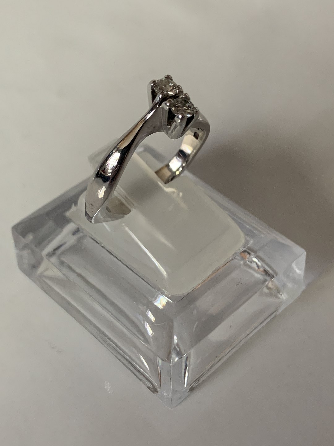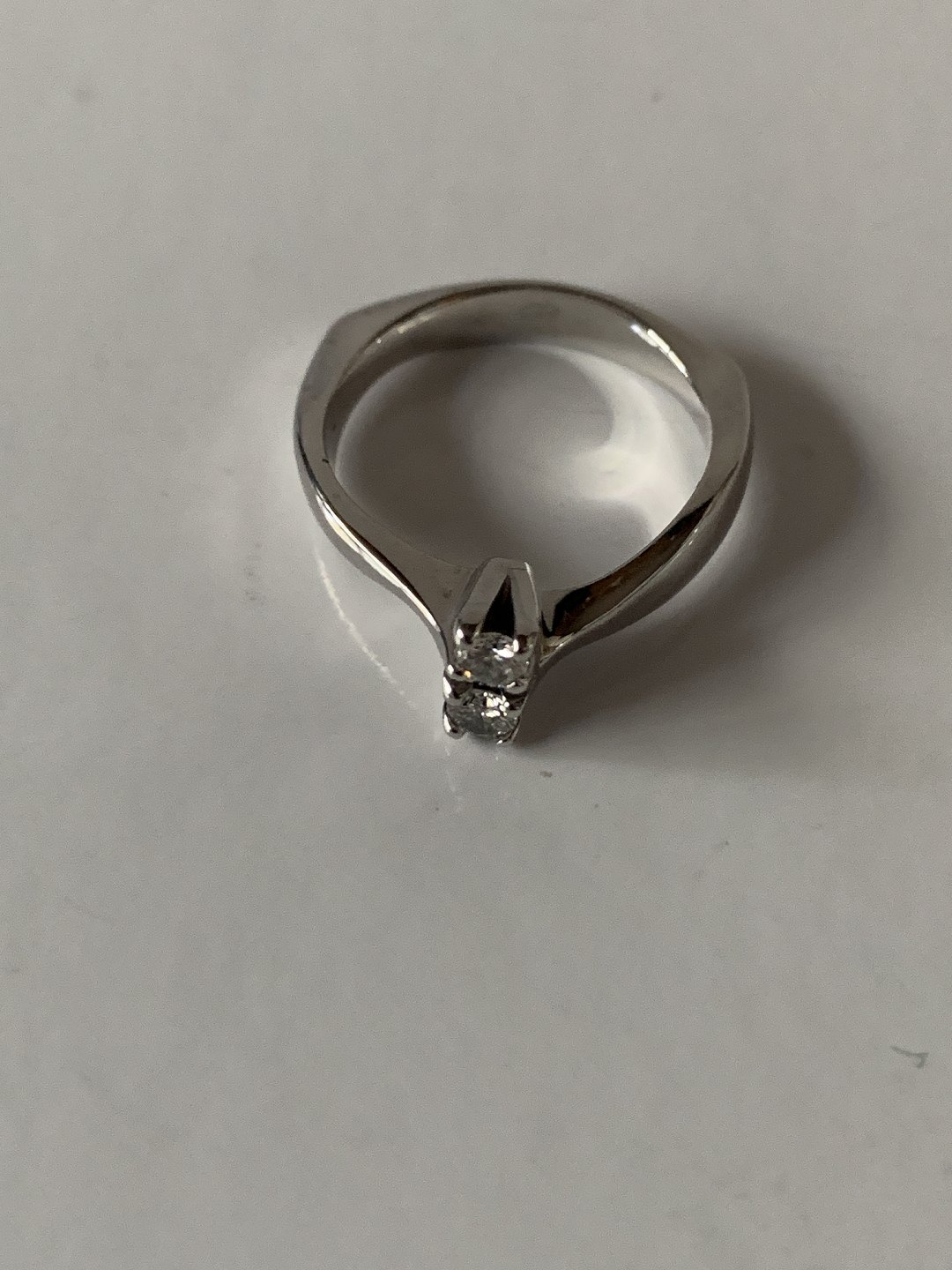 Damering med 2 brillanter i 14 karat hvidguld. Stemplet 585. Str. 54