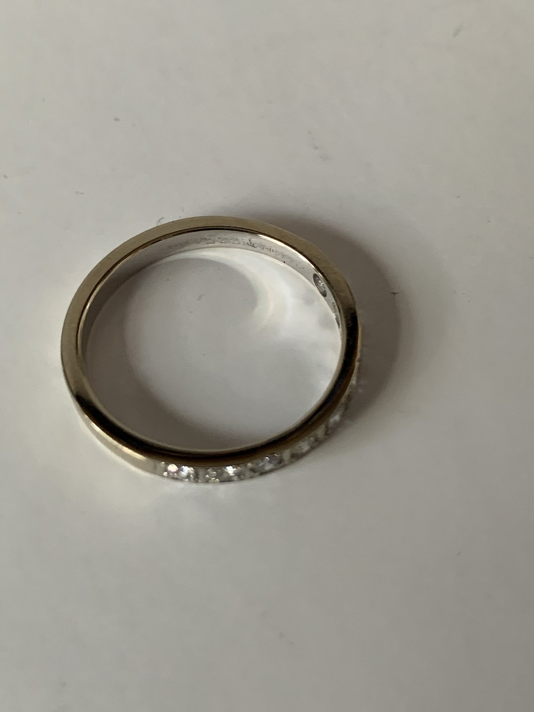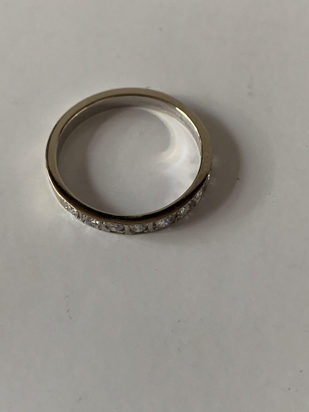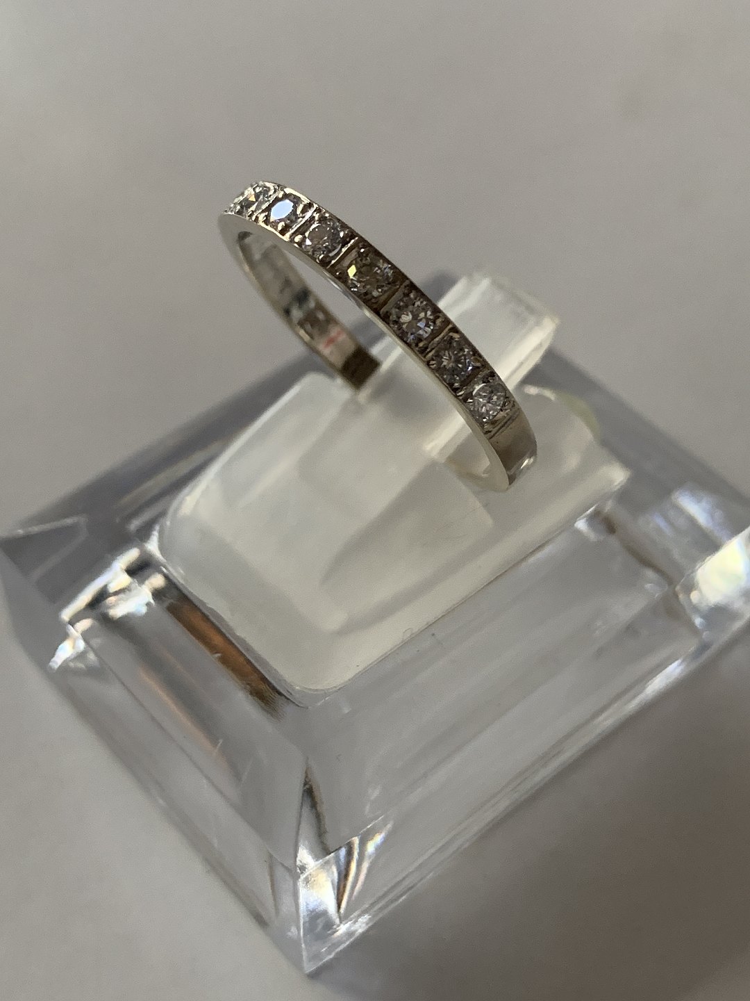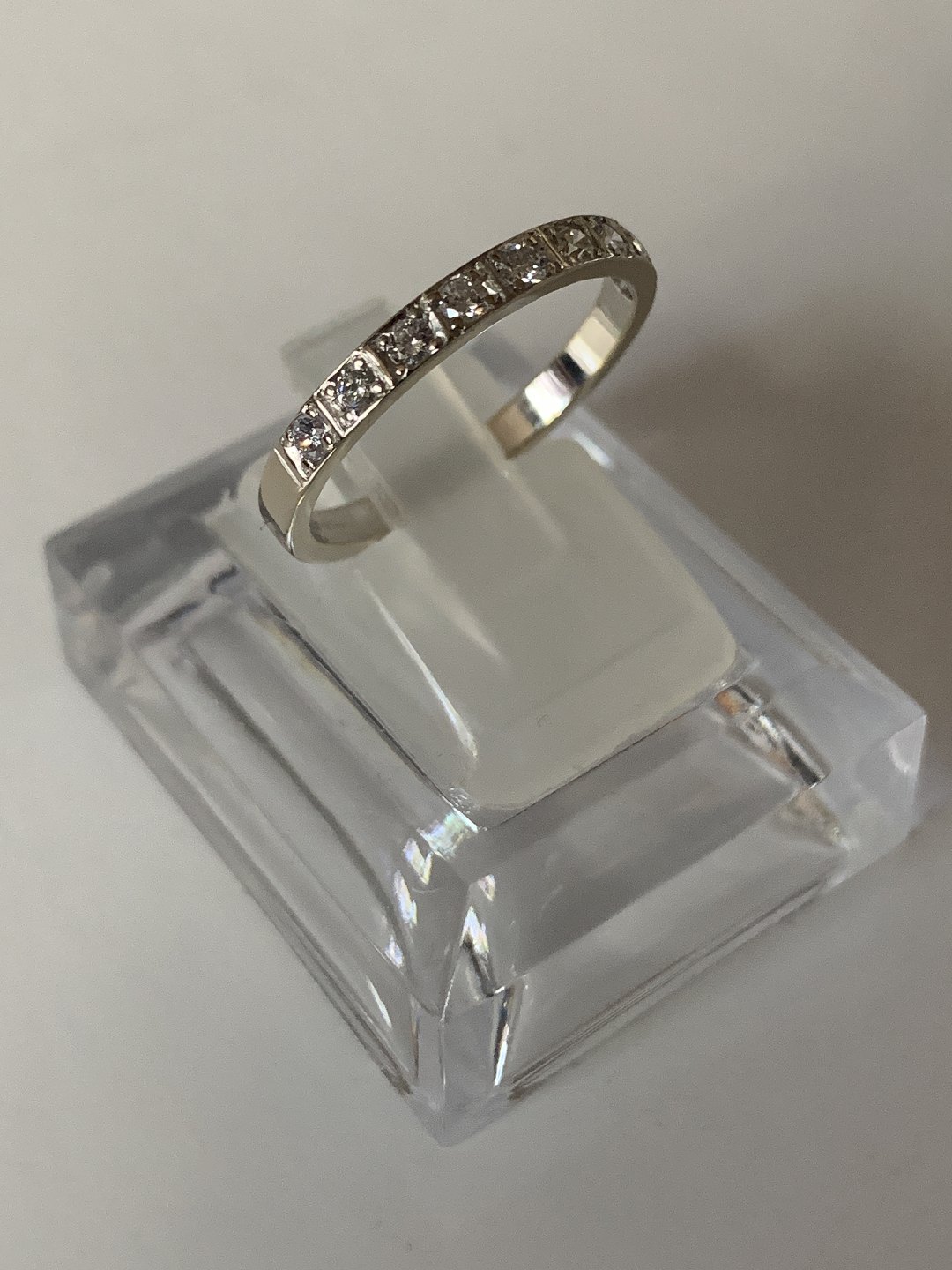 Alliance damering i 14 karat hvidguld, med indlagte brillanter. Størrelse 56,5.