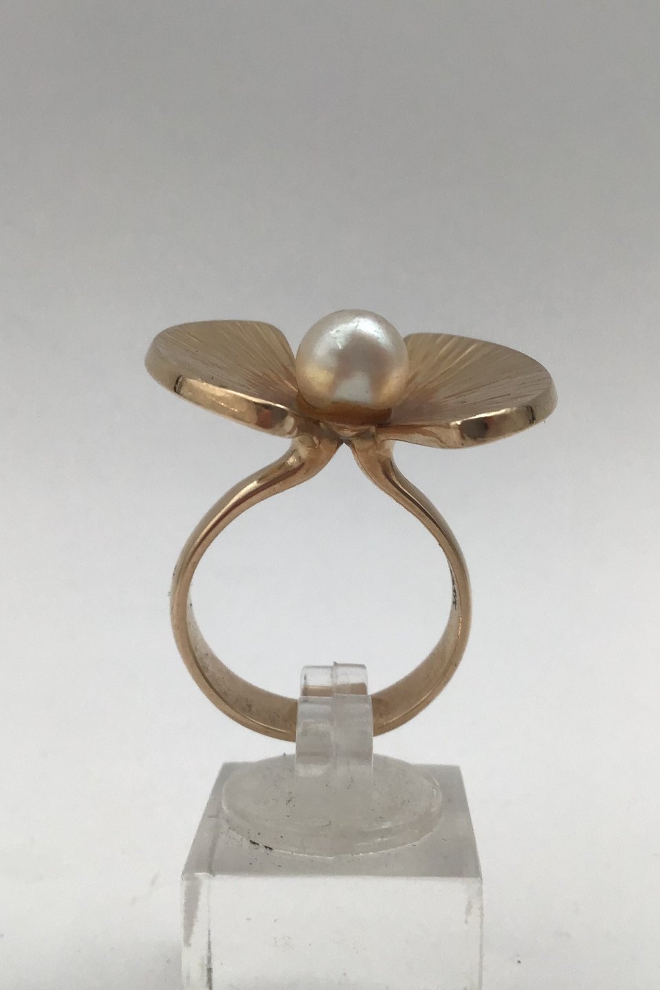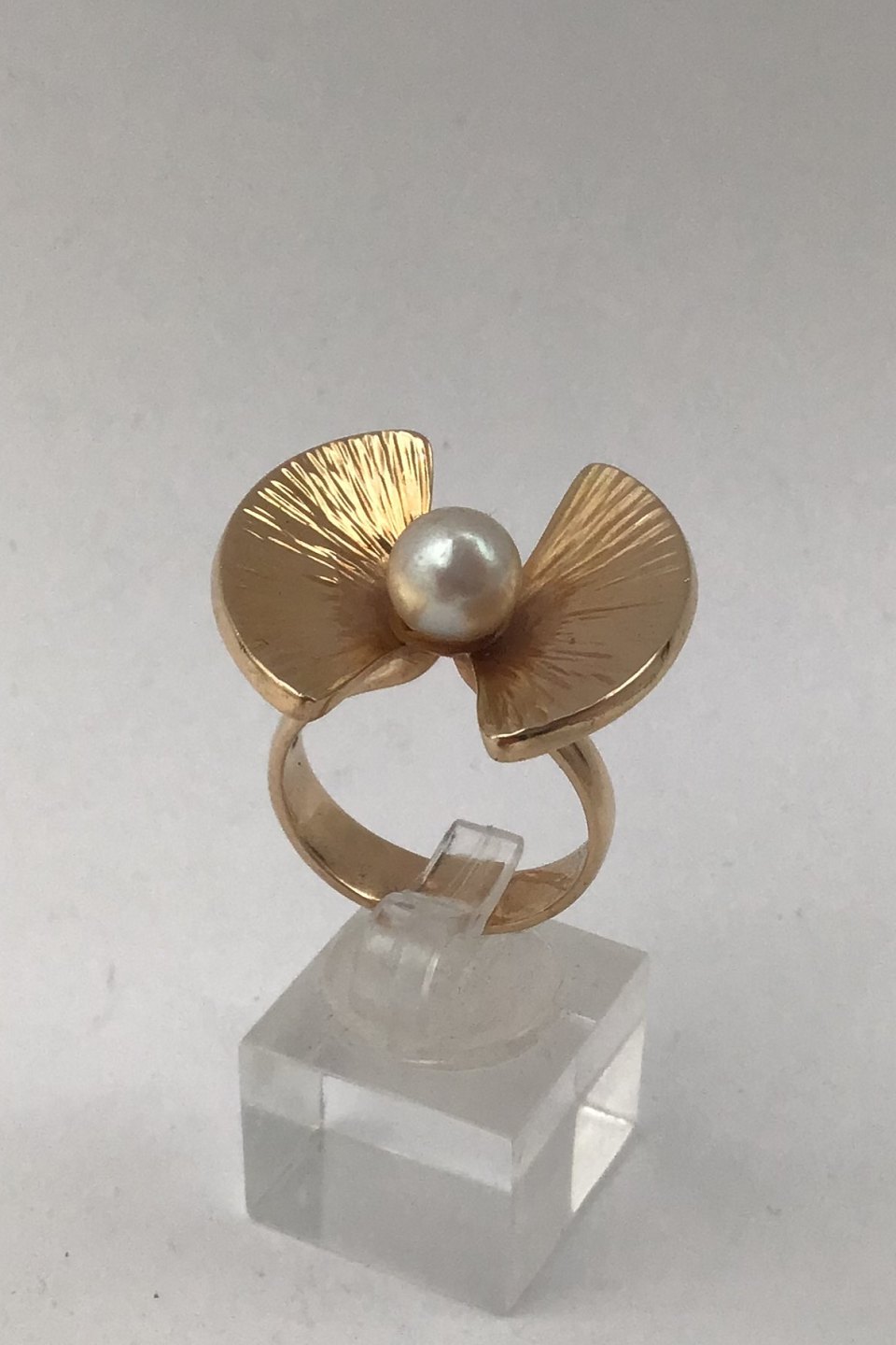 Bent Gabrielsen 14K Guld Ring m Perle Måler Ring Str. 57 (US 8) Vægt 13.1 gr (0.46 oz)