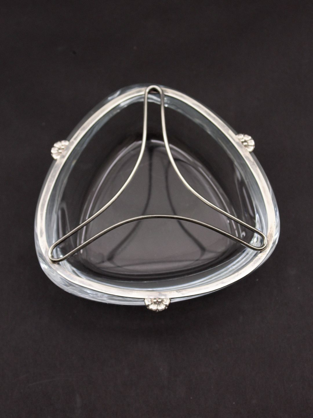 Trekantet glas skål med sterling sølv montering