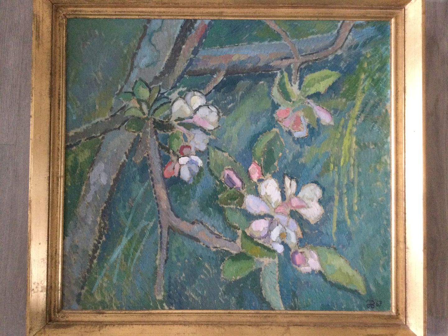 Blomstrende gren på frugttræ 1967.