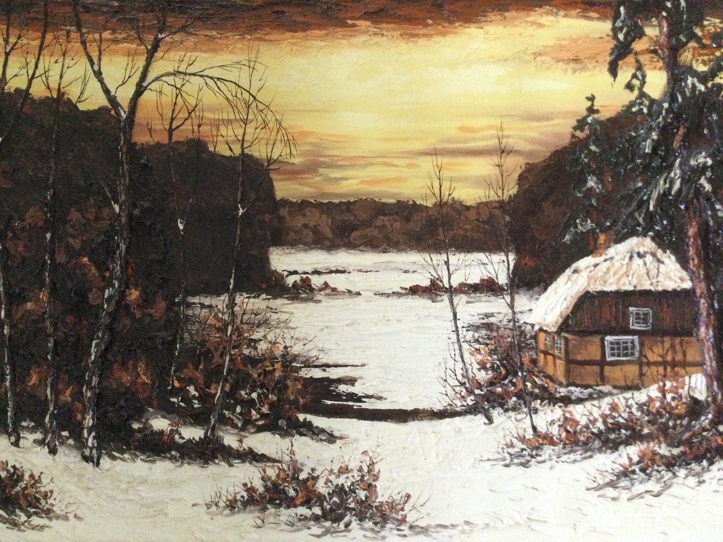 Maleri af Bo Hansen 1972 - Vinterparti fra Frijsenborg Skov.