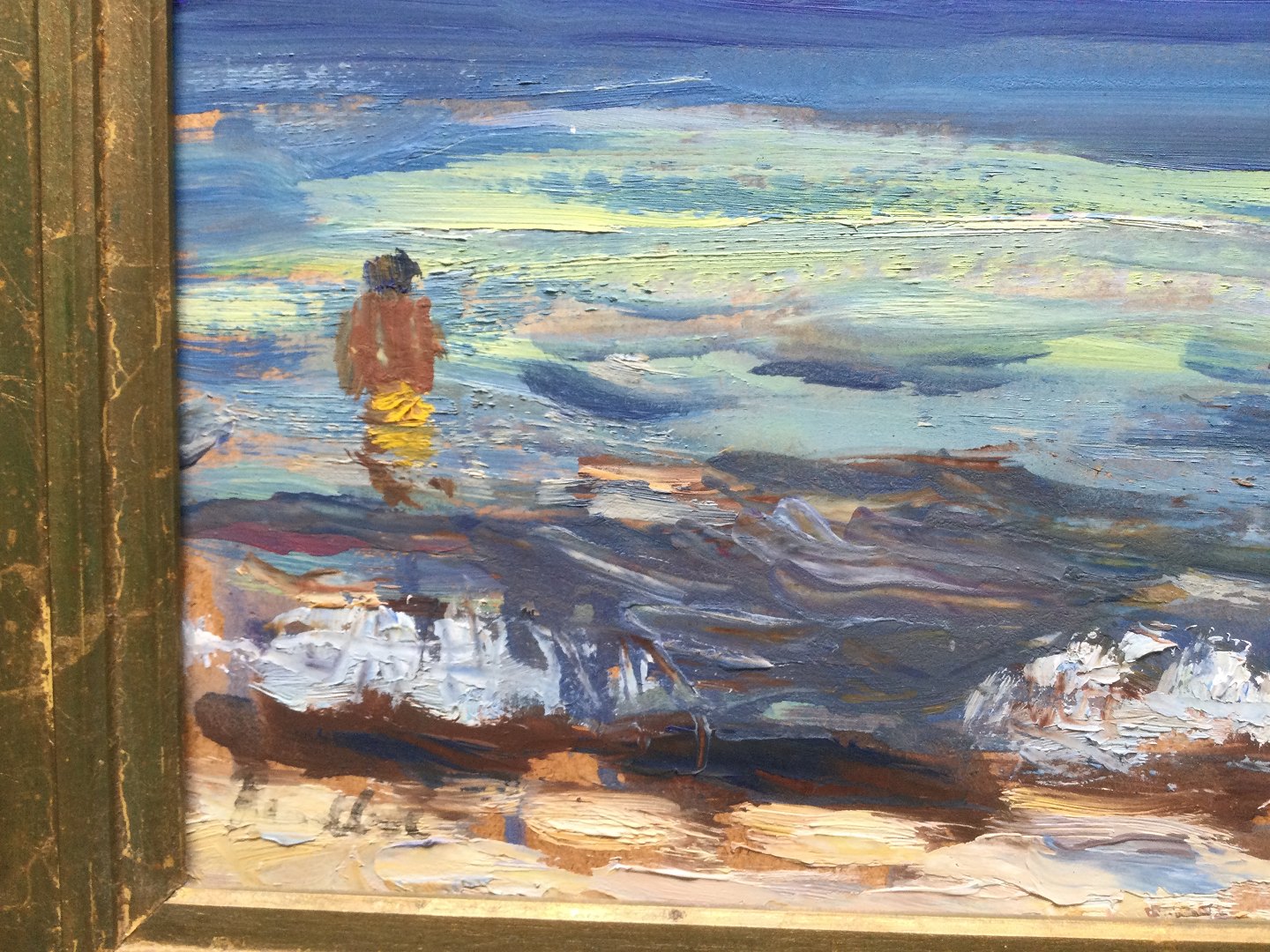 Udstillingslabel bagpå - "Sommerdag ved Nyborg Strand"