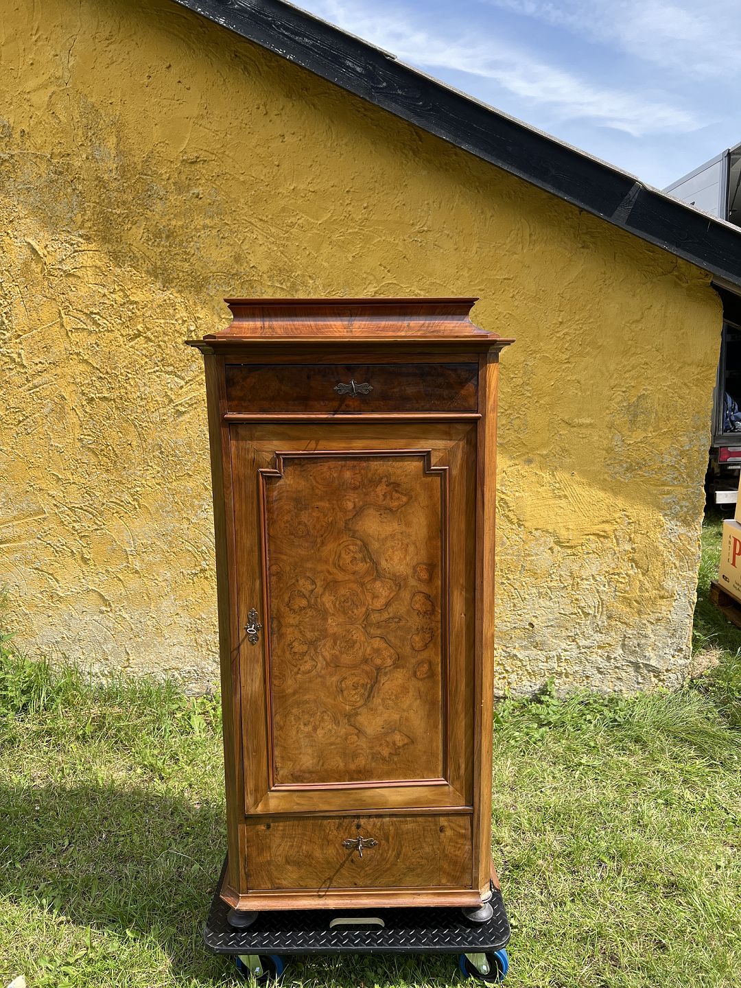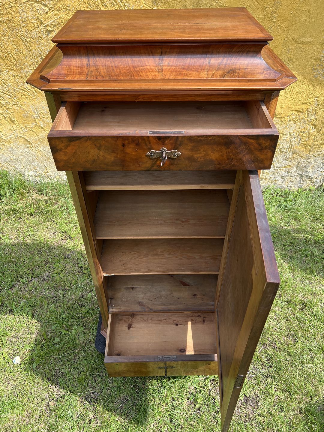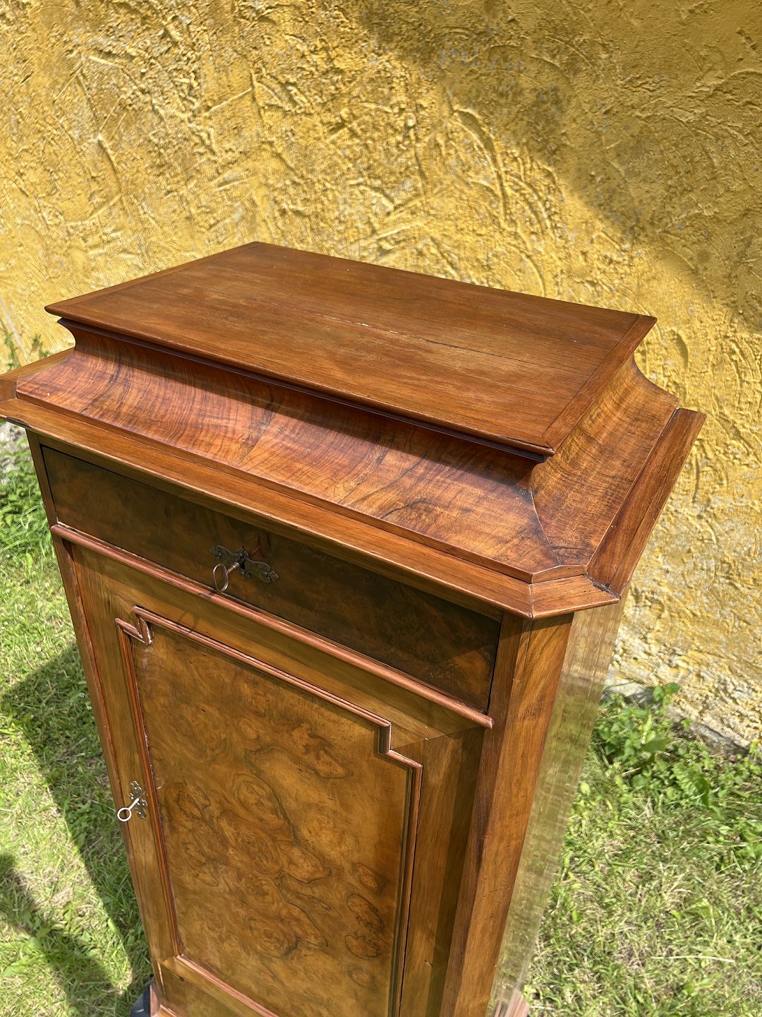 Empire piedestsalskab fineret nøddetræ udført ca. 1880-90.