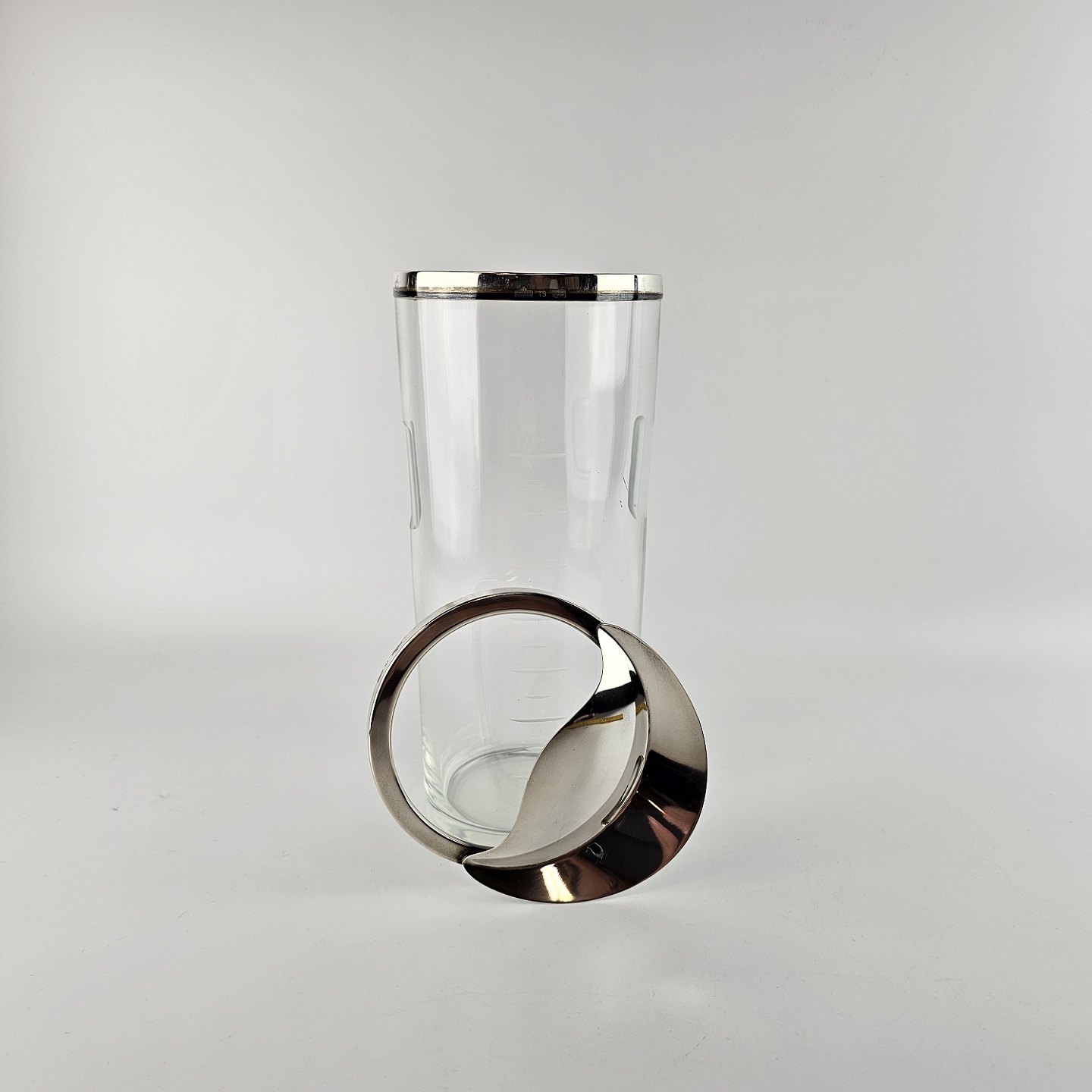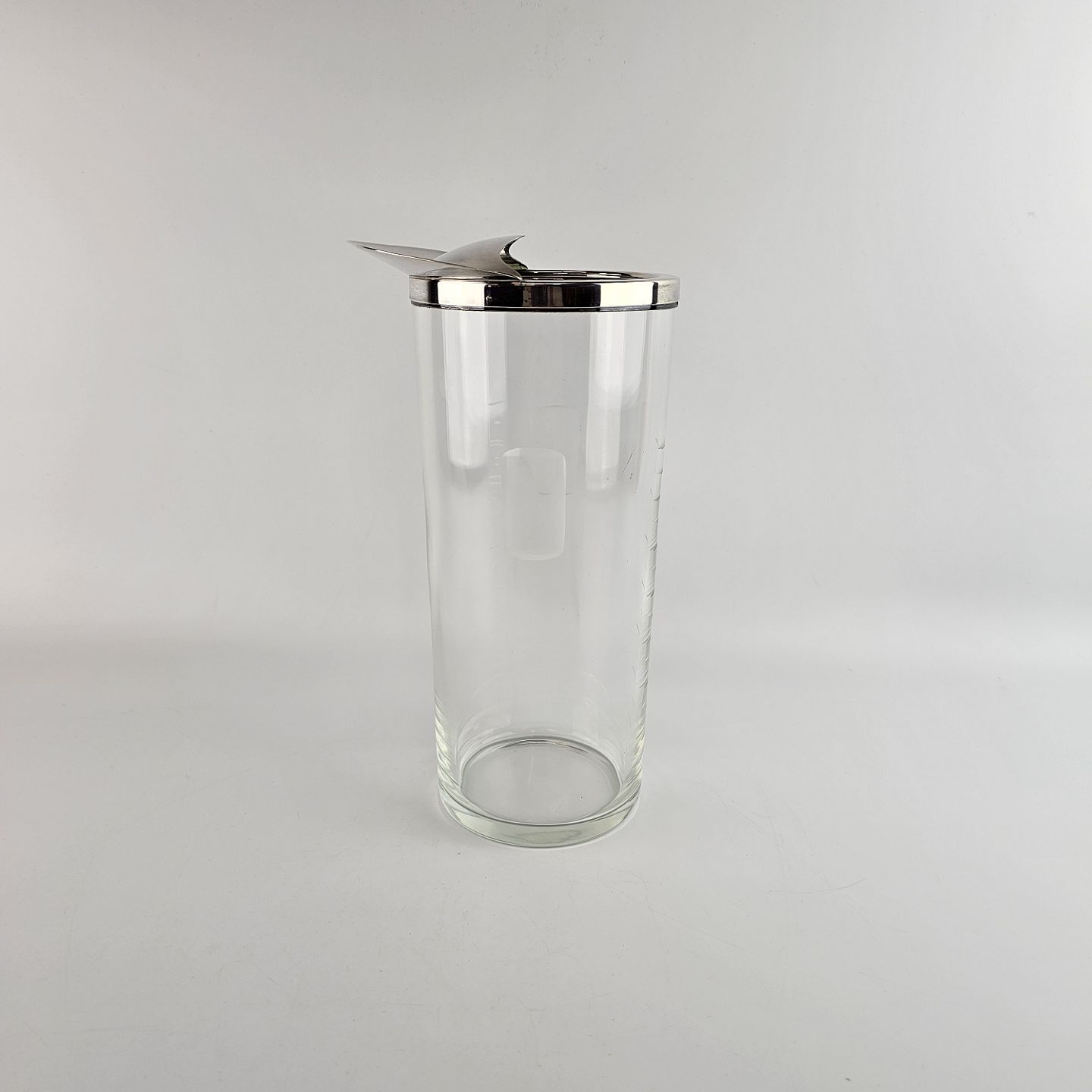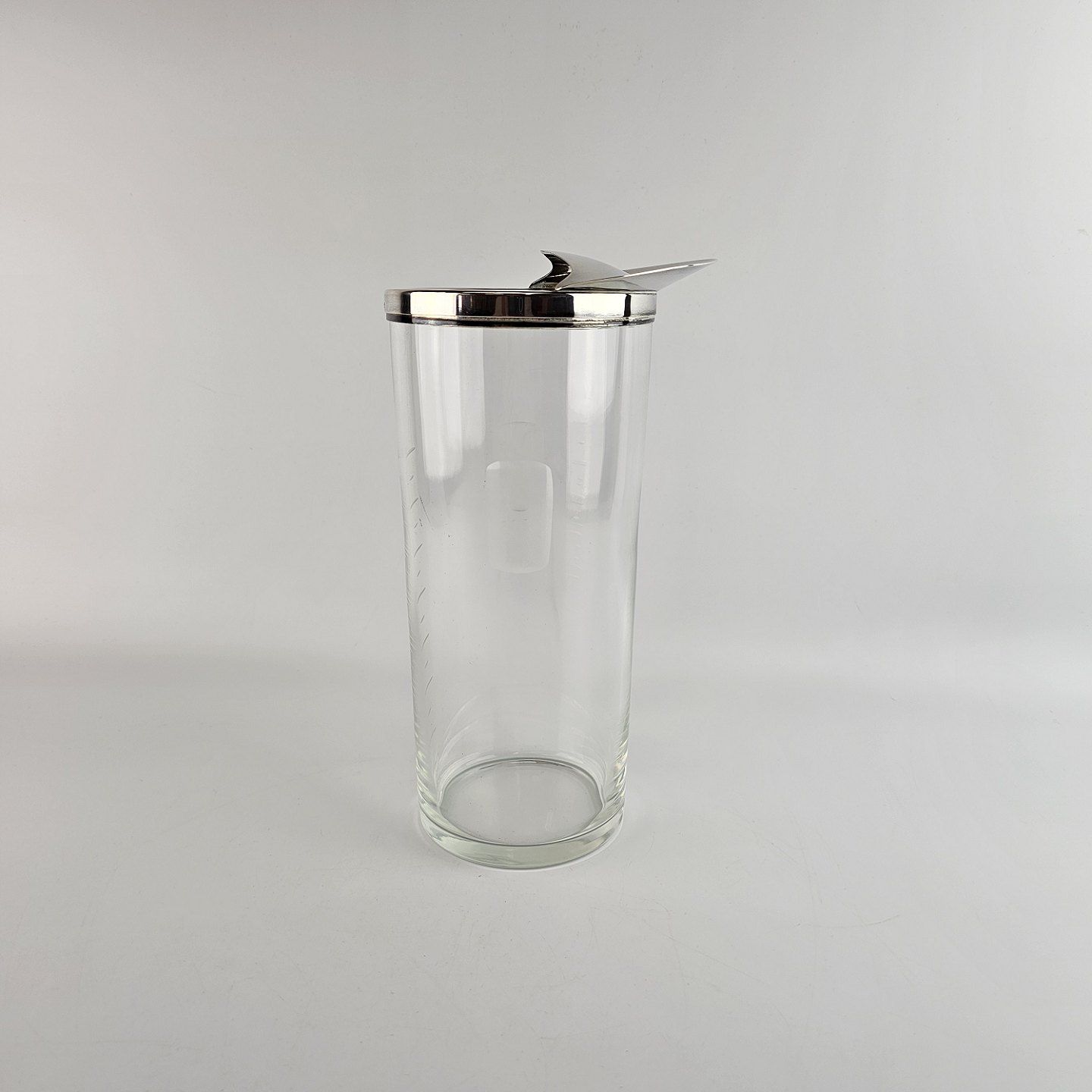 Glaskande med hældetud. Kant og låg i sterlingsølv