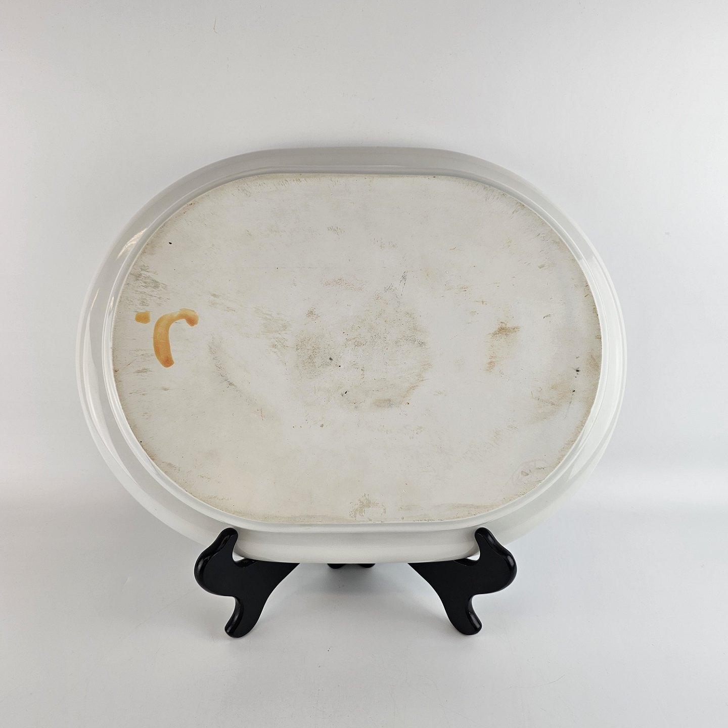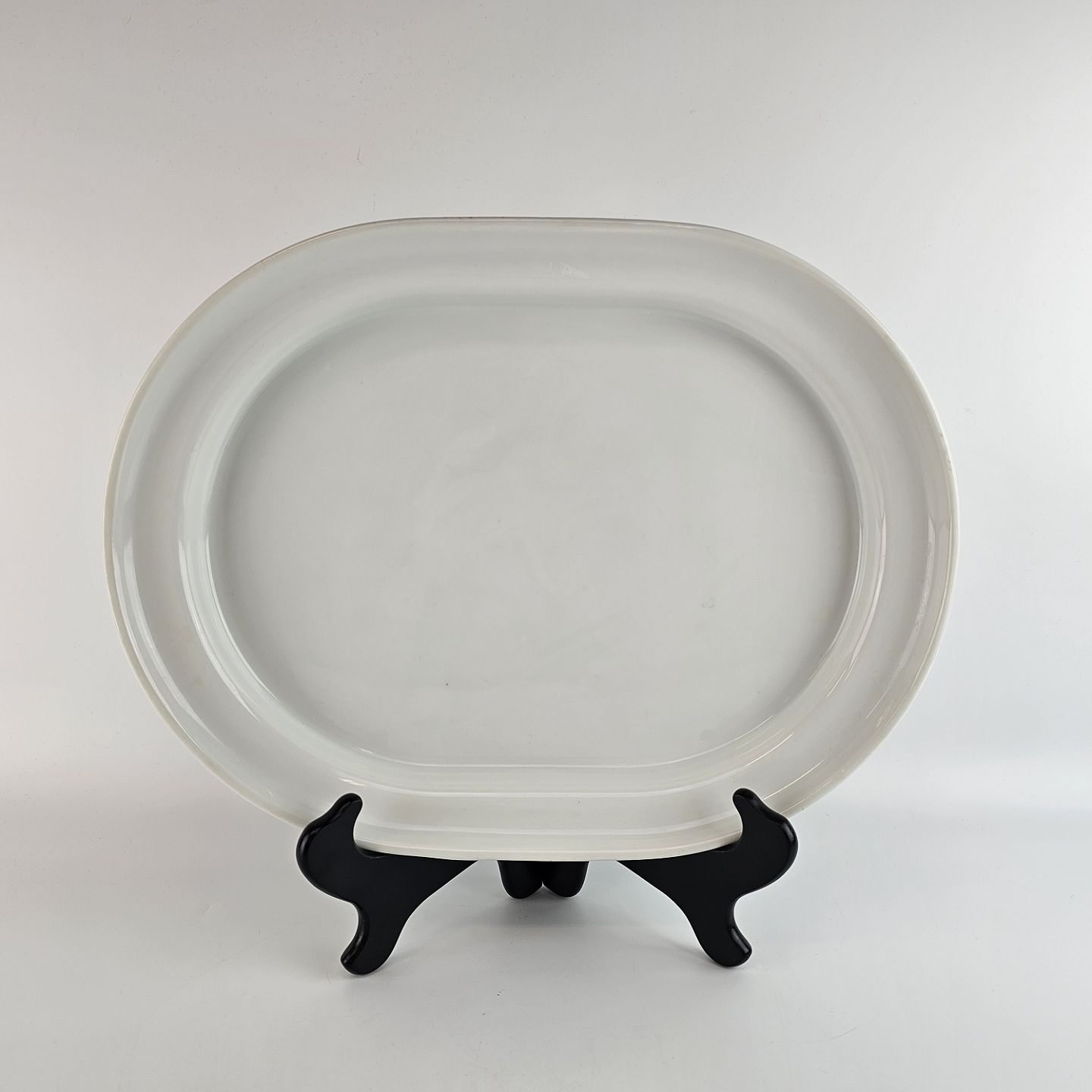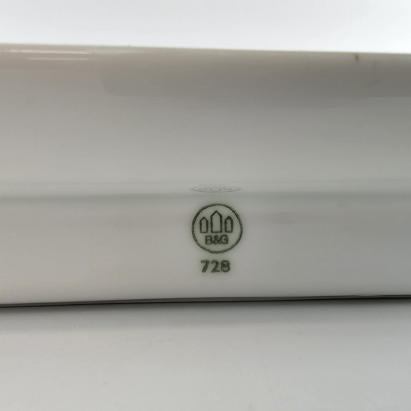 Hank er af hvidt glaseret porcelæn og med sorte hanke. Brugsspor kan forekomme