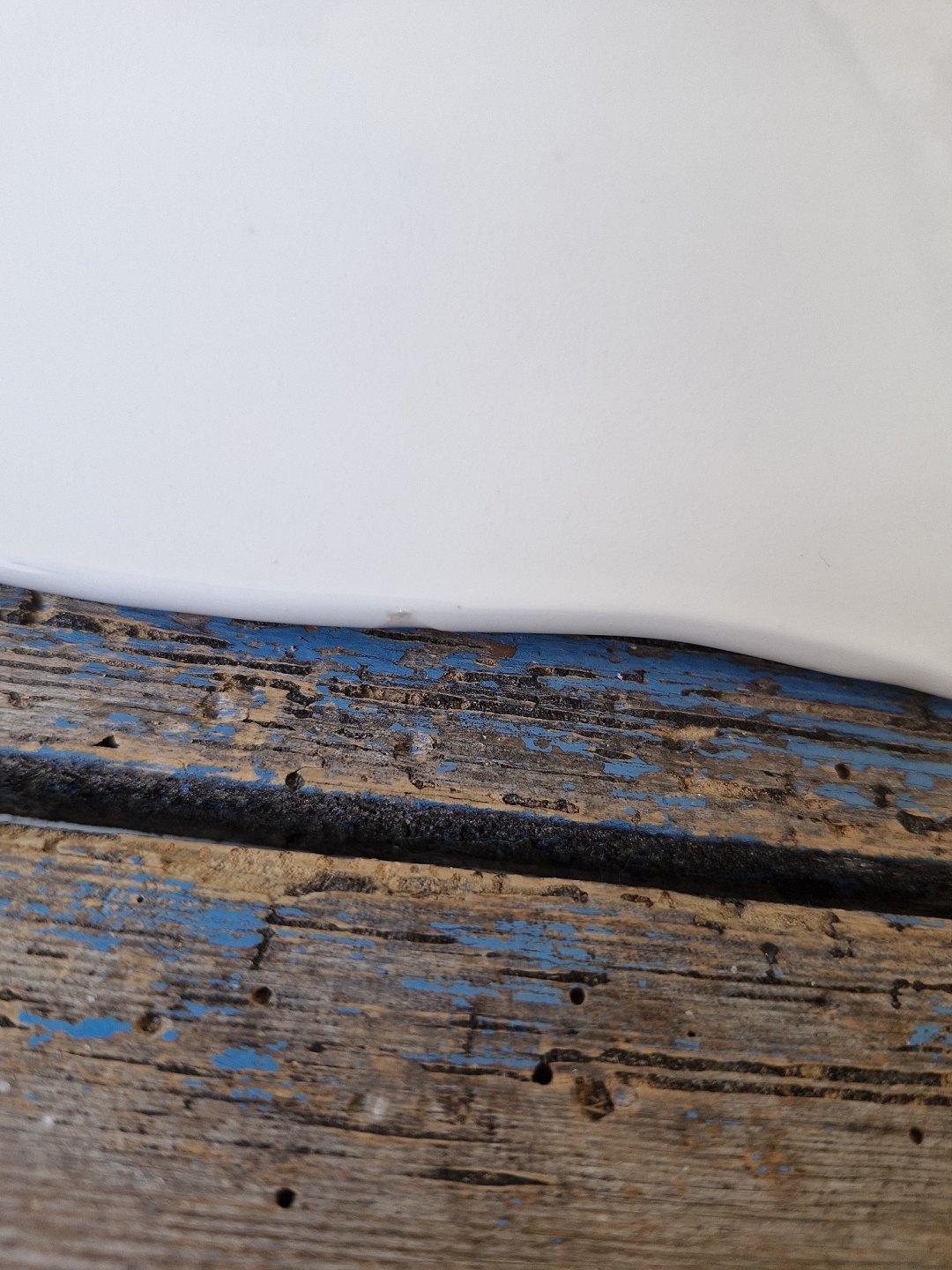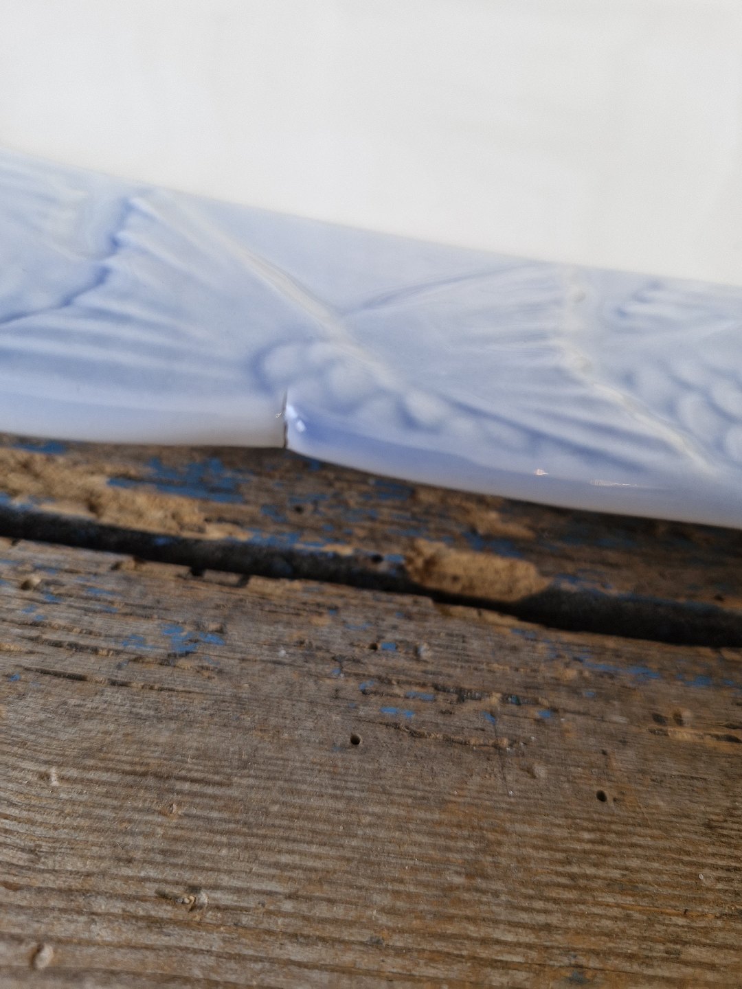 Fremstår med en brændingsrevne samt et lille afslag - se billed