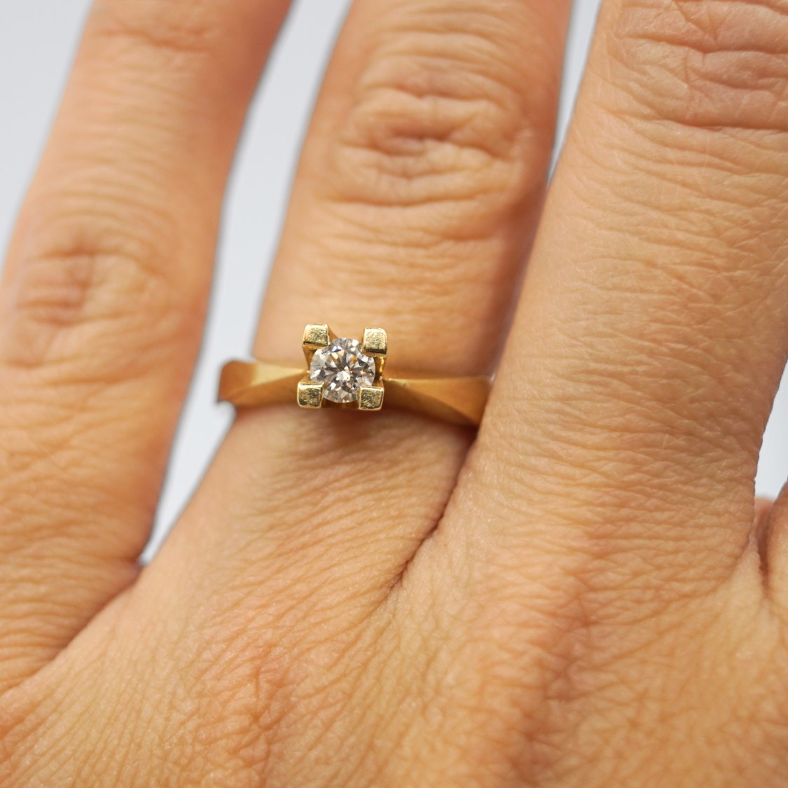 Henning Ulrichsen; Ring i 14 kt. guld, prydet med diamant, 0,20 ct. W SI.
