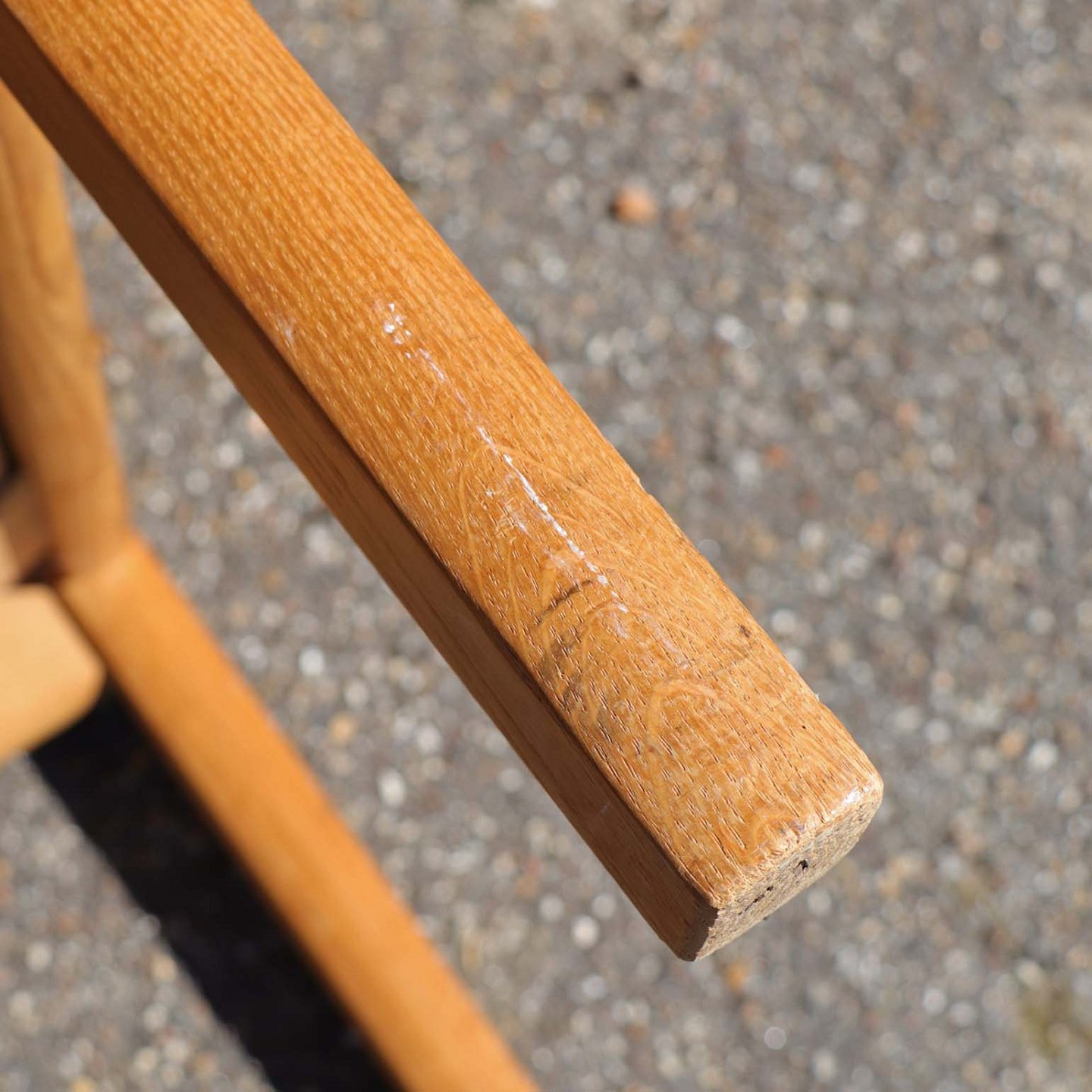 Fremstår med brugsspor i form af mindre afslag på stel ved ryggen, ridser på træ samt vandmærker