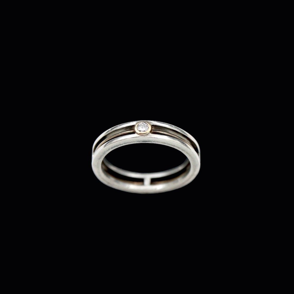 Erik Ingomar Vangsgaard. Ring i sterlingsølv med guld og brillant. 0.03ct.