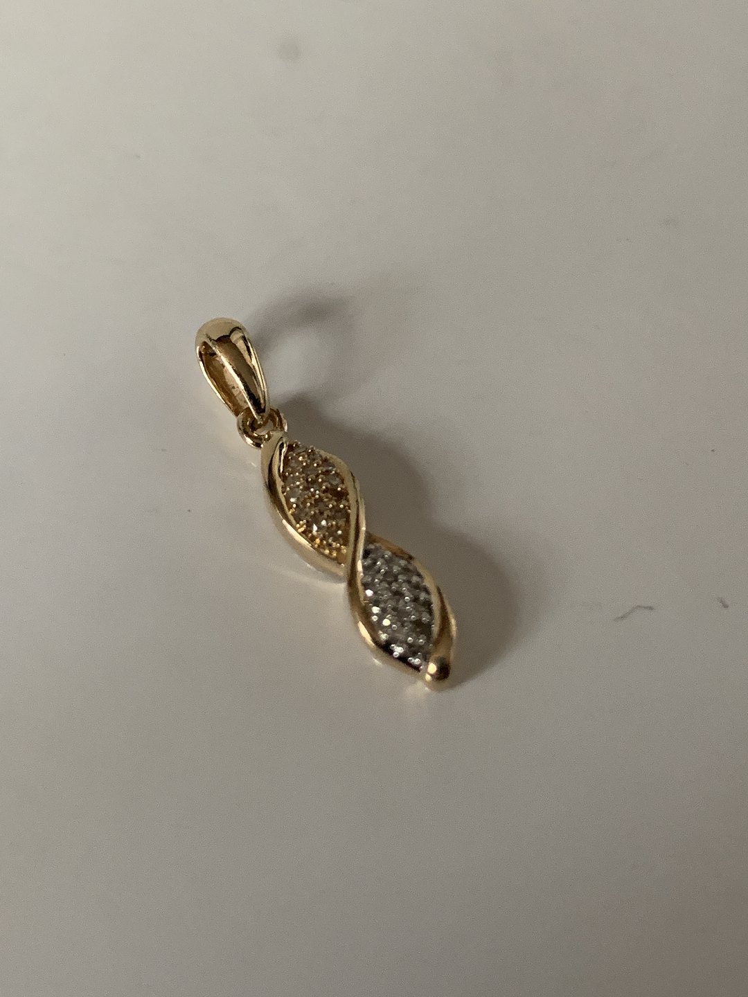 Infinity Sign tegn-symbol vedhæng med diamanter i 14 karat guld, meget unikt.