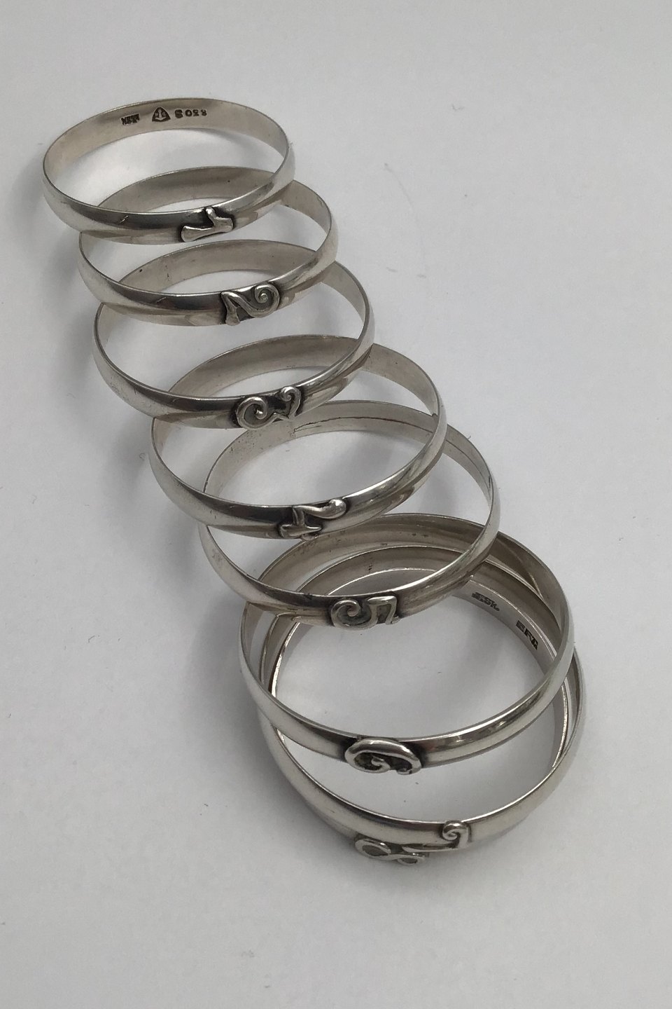 Jakob Skaarup Sølv Servietringe Sæt (8) Nummereret 1-8 Måler Diam ca 3.6 cm (1.41 inch) Samlet vægt 48. 2 gr (1.70 oz)