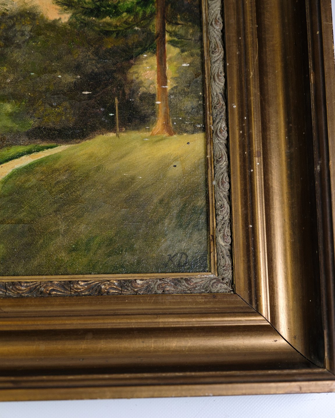 Oliemaleri - Lærred - Forgyldt Ramme - Signeret Af Kai Drews - 1930erne