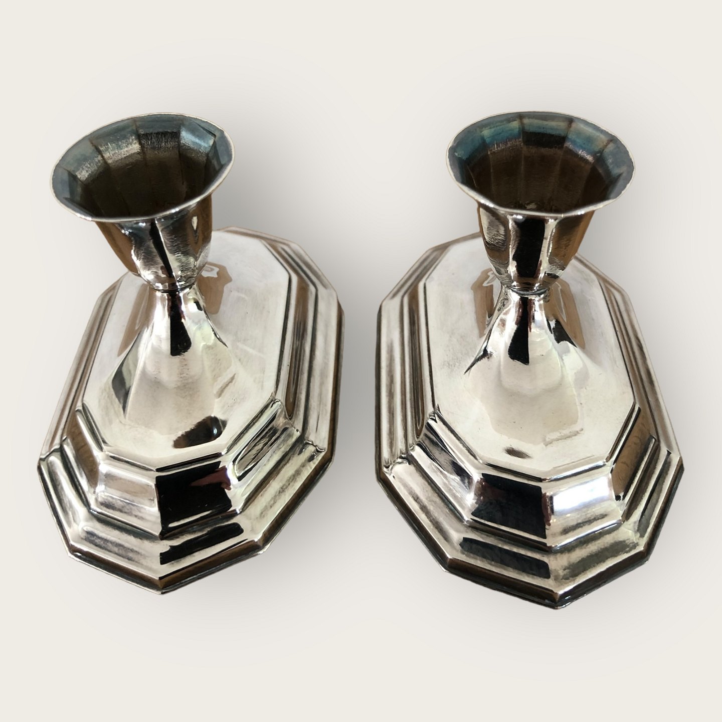 Two small modern silver-plated candlesticks, 7x4.5x4.5 cm, Nice condition