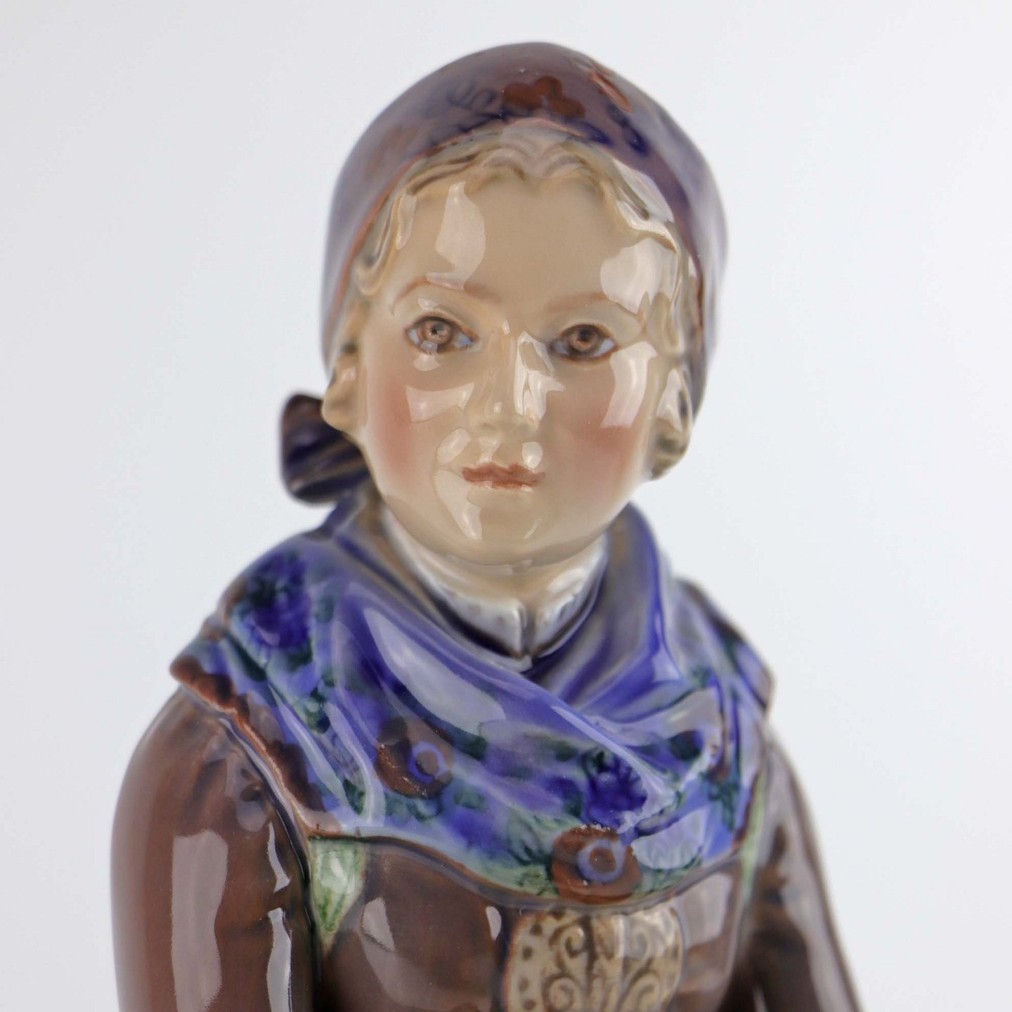 Figur i porcelæn, nr. 1110, med motiv af en siddende ung kvinde iført egnsdragt