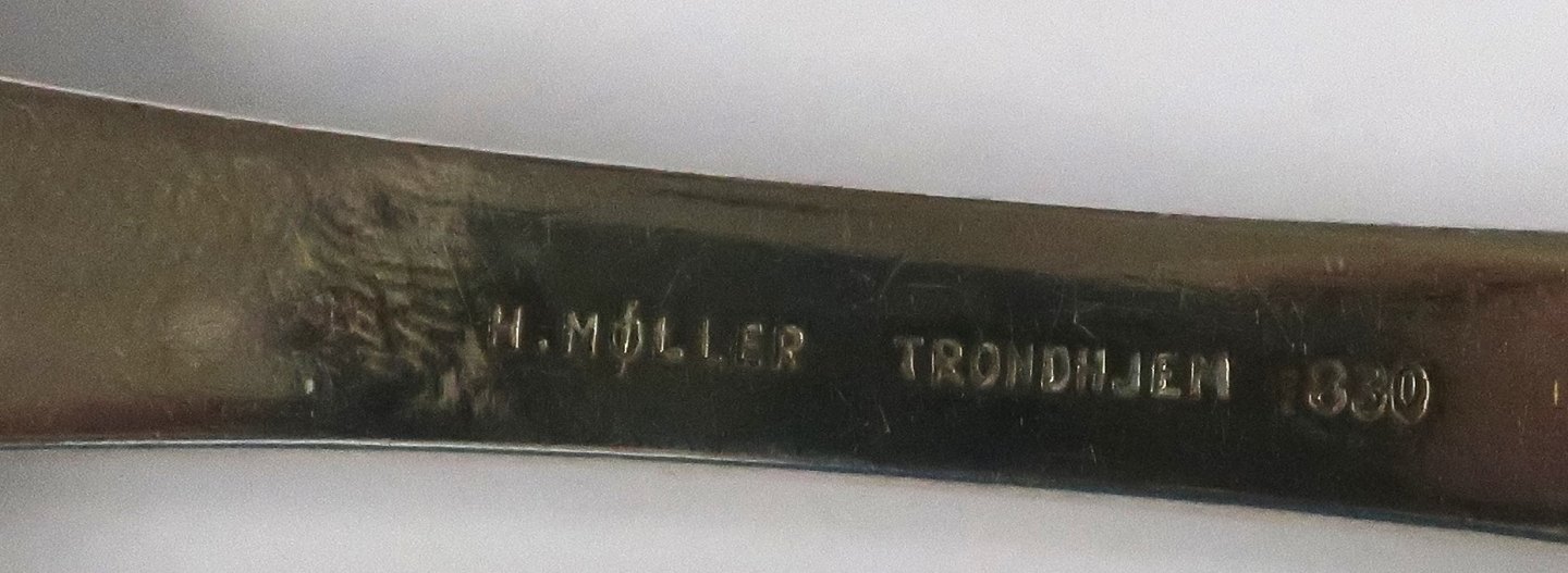 Norge. Henrik Møller, Trondheim. Sølvbestik (830). Serveringsske. Længde 22,4 cm.