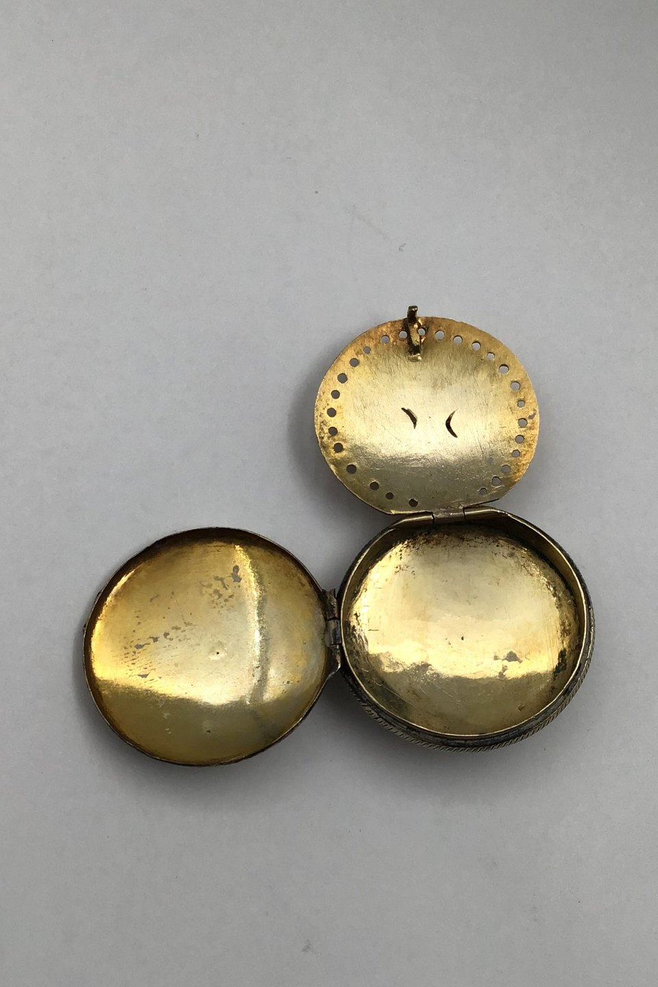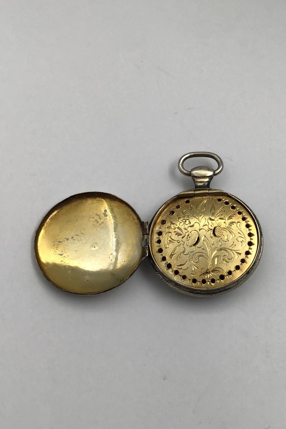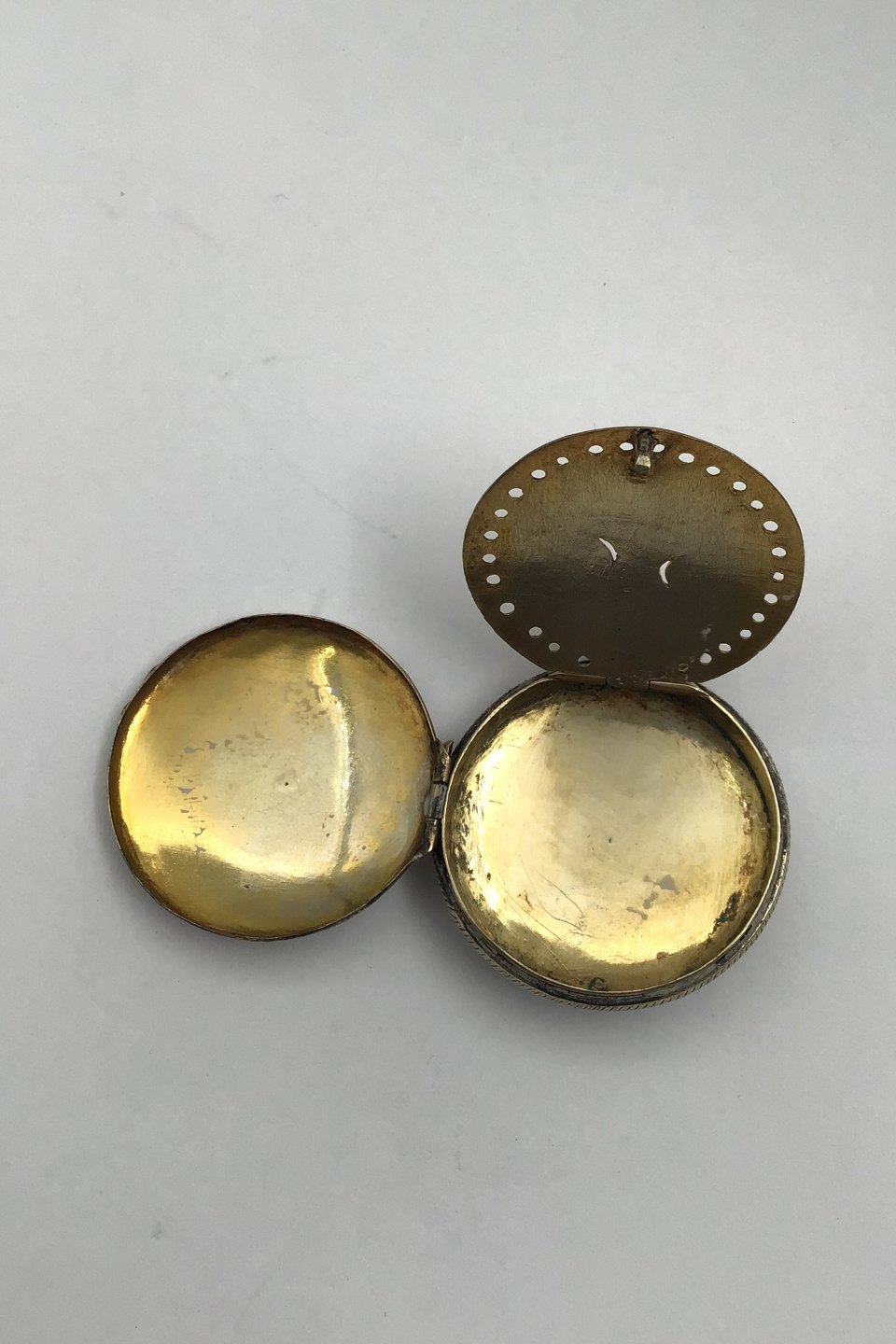 Silver (Partially Gilt) Vinaigrette Measures Diam 3.3 cm (1.3 inch) Weight 13.7 gr (0.48 oz) (No Hallmark)