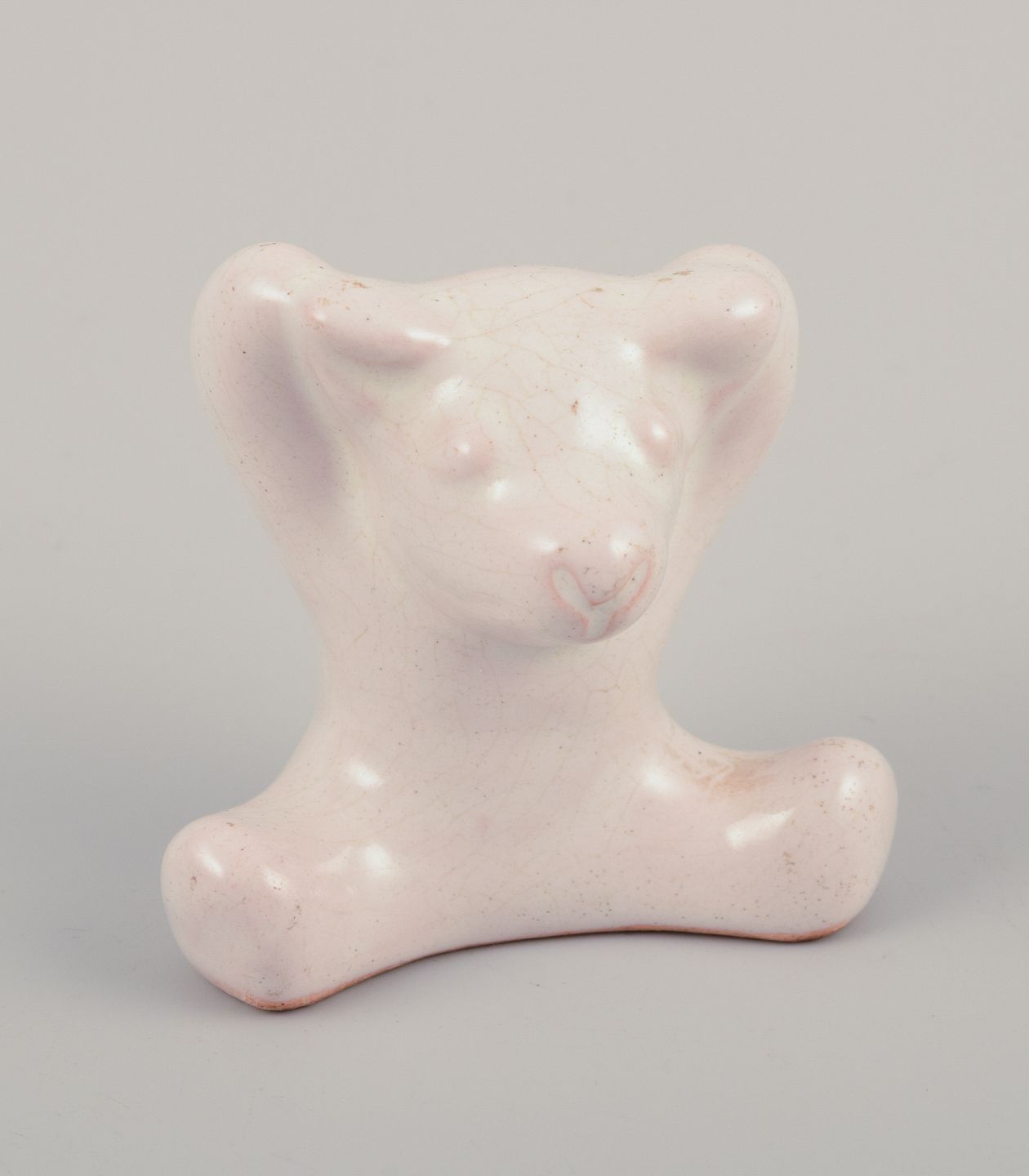 Fem bjørne-musikanter i hvidglaseret stentøj.