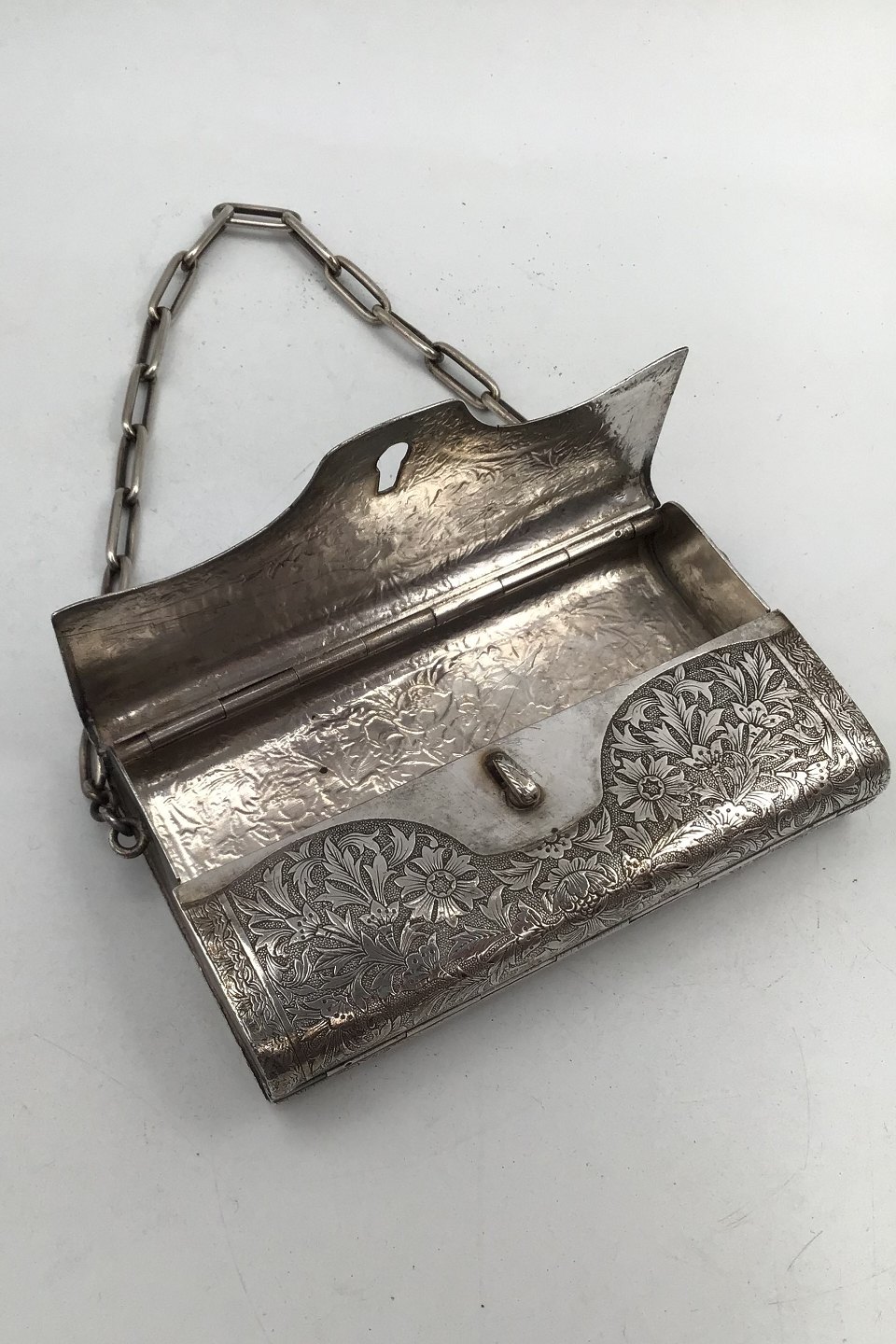 Asian Silver Purse Measures 12 cm x 7 cm x 2.2 cm (4.72 inch x 2.75 inch x 0.86 inch) Chain 31 cm (12.20 inch) Weight 216.9 gr (7.65 oz)