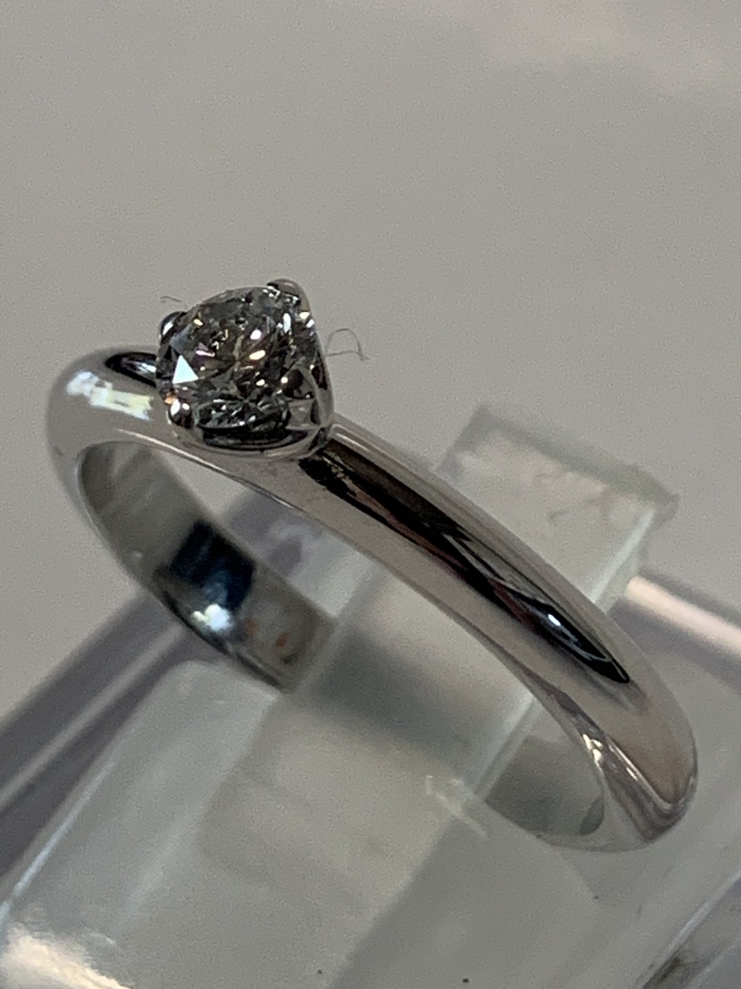 Flot og enkel damering i 18 karat hvidguld, med diamant på toppen. Ringen er enkel i sin opbygning, der giver et minimalistisk stilrent look. Ringen kan enten bæres alene, eller i kombination med andre ringe.