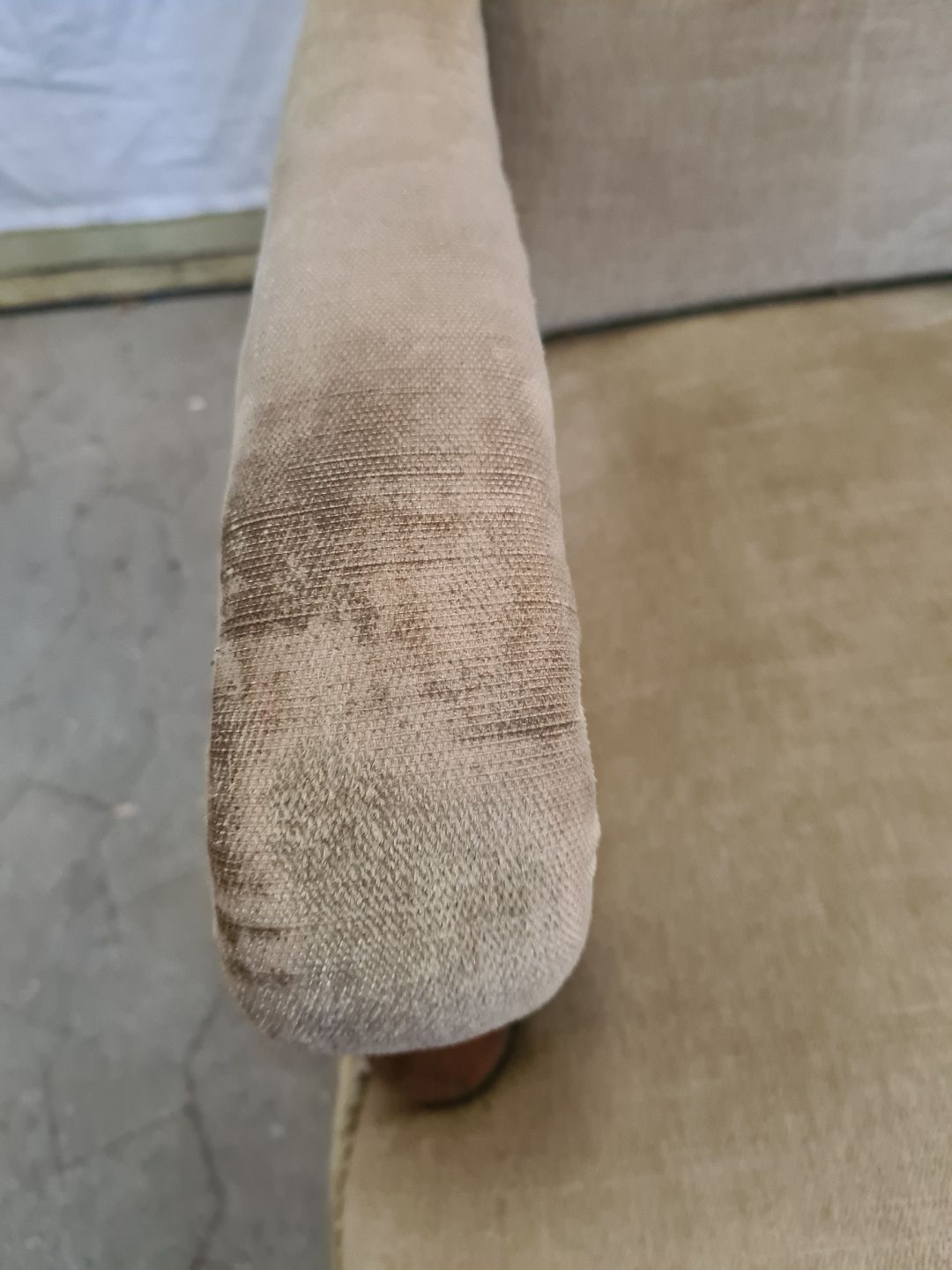 Lænestol i velour og bejdset bøgetræ, fra 1910erne.