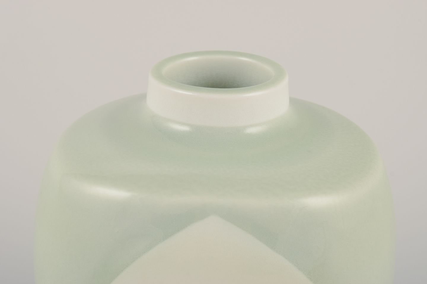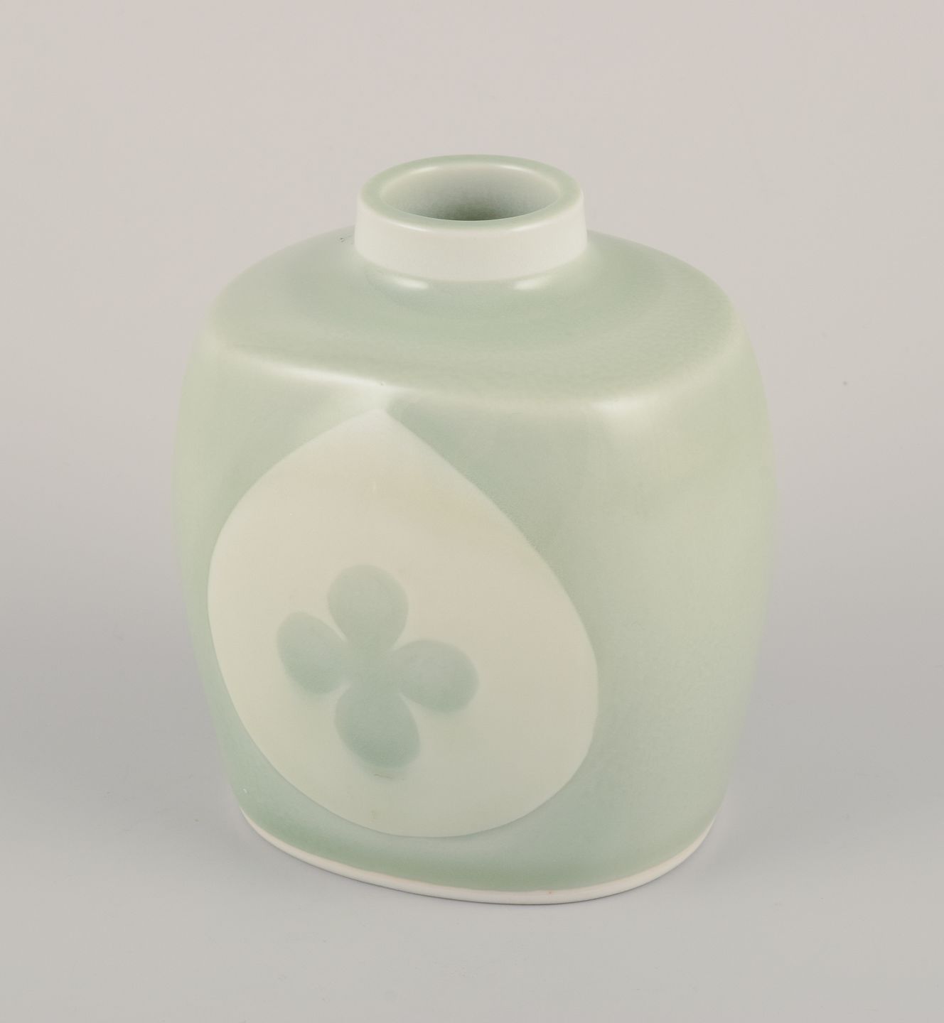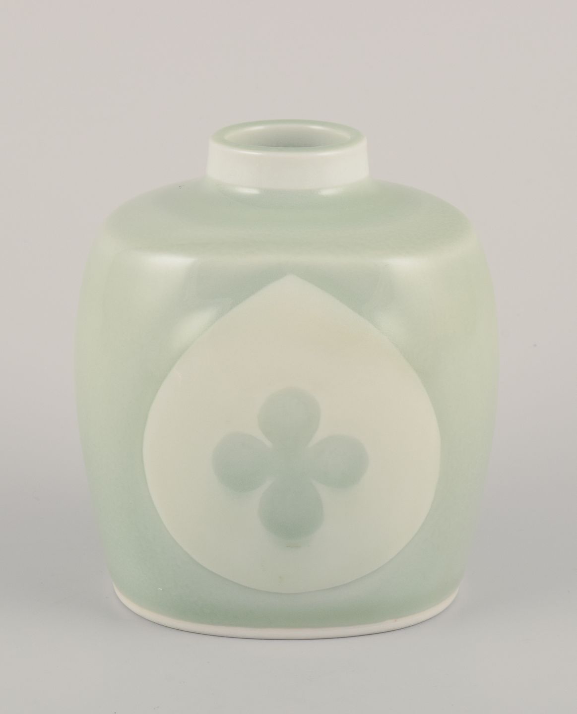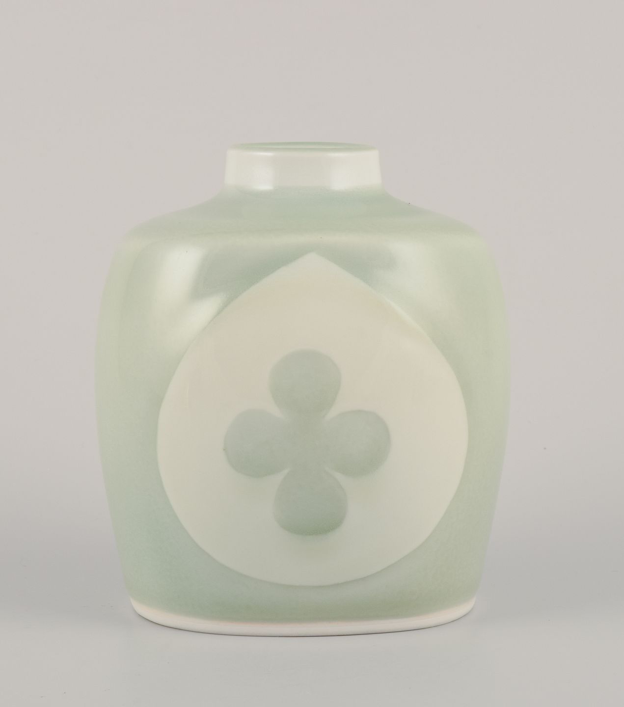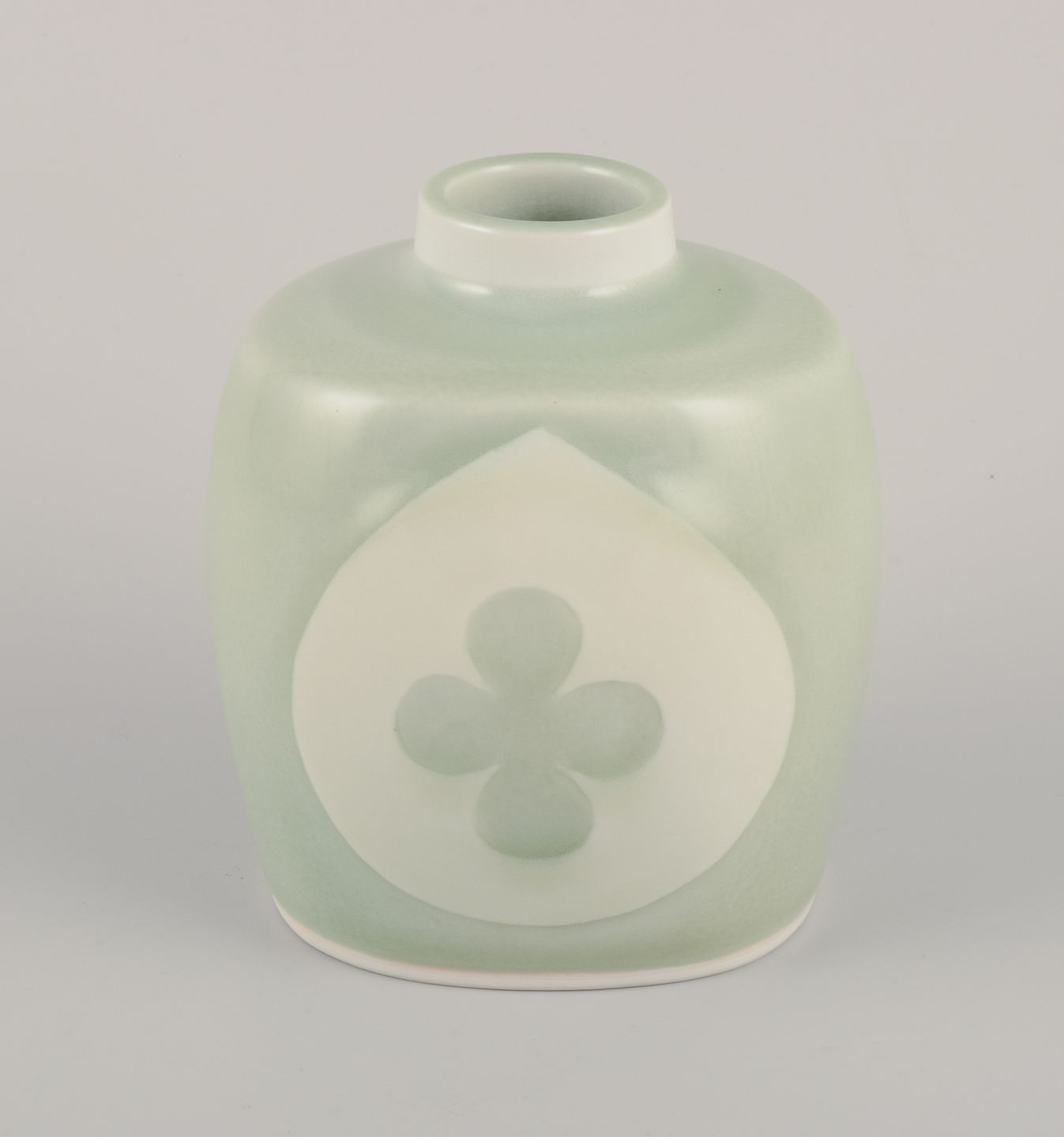 Sjælden keramikvase i celadonglasur. Motiv af firkløver.