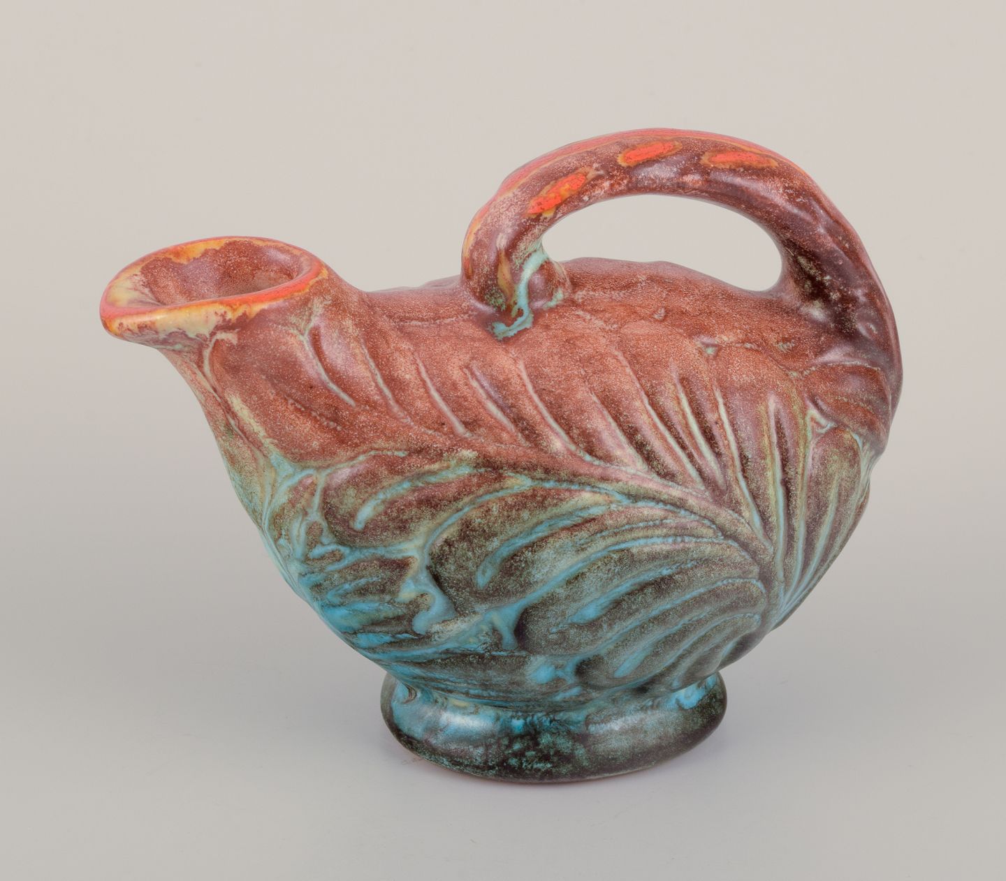 Glasur i brune, blå og grønne nuancer.