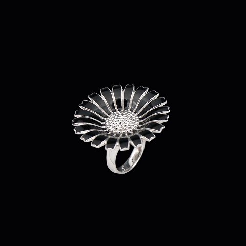 Georg Jensen Marguerit / Daisy ring i sterling sølv med sort emalje - 33mm.