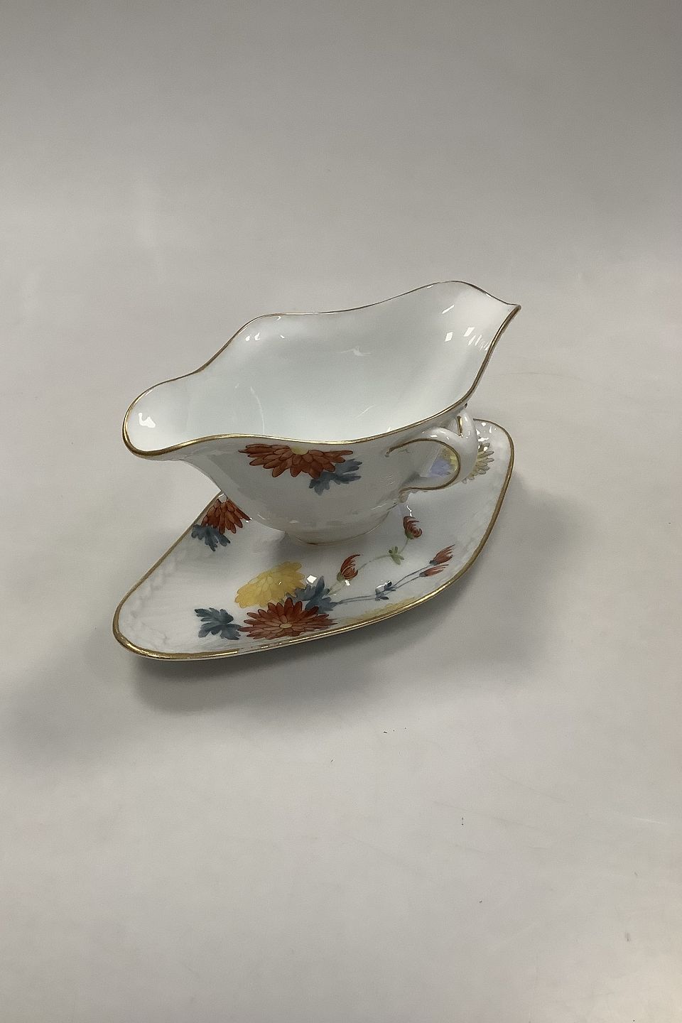 Royal Copenhagen Stel No 93 Hvid Halvblonde m. Blomster og Guldkant Sovseskål