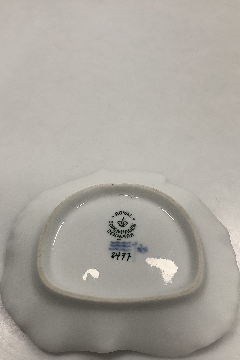 Royal Copenhagen Skål Frø på åkandeblad No 2477. Måler 10cm x 3cm. Designet af Erik Nielsen.