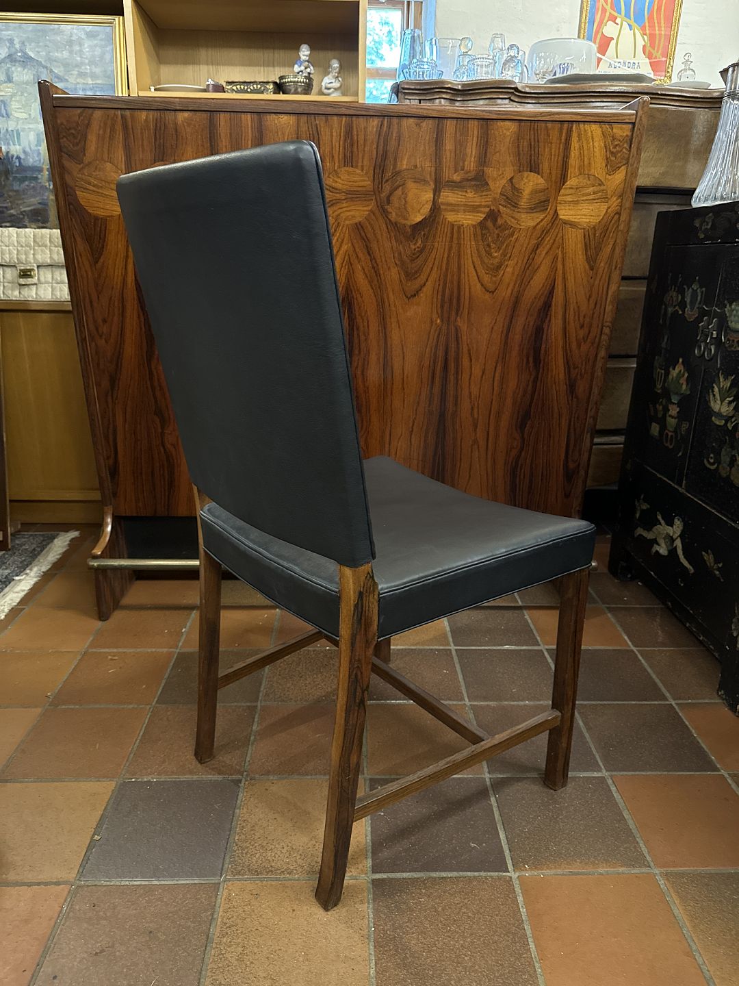 Ole Wanscher spisebordsstol udført i Palisander samt senere ombetrukket med sort læder.