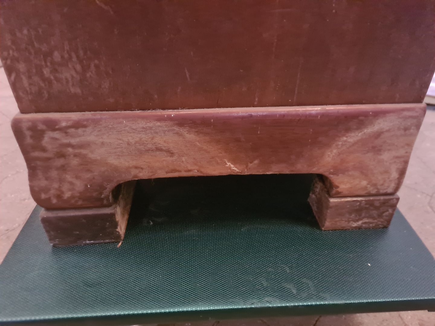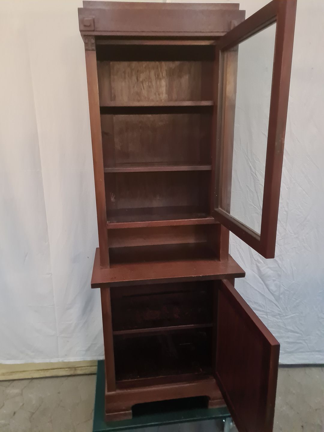 Skab i fineret mahogni med vitrine overdel, fra 1910erne.