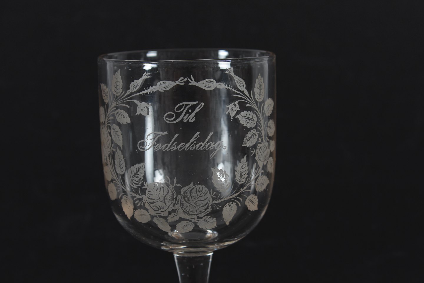 Med ætset påskrift "Tii Fødselsdag"