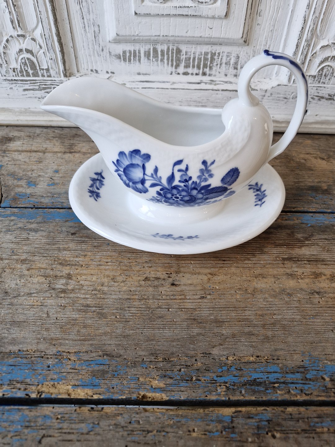 Royal Copenhagen Flettet Blå Blomst saucekande på fast underfad No. 8069