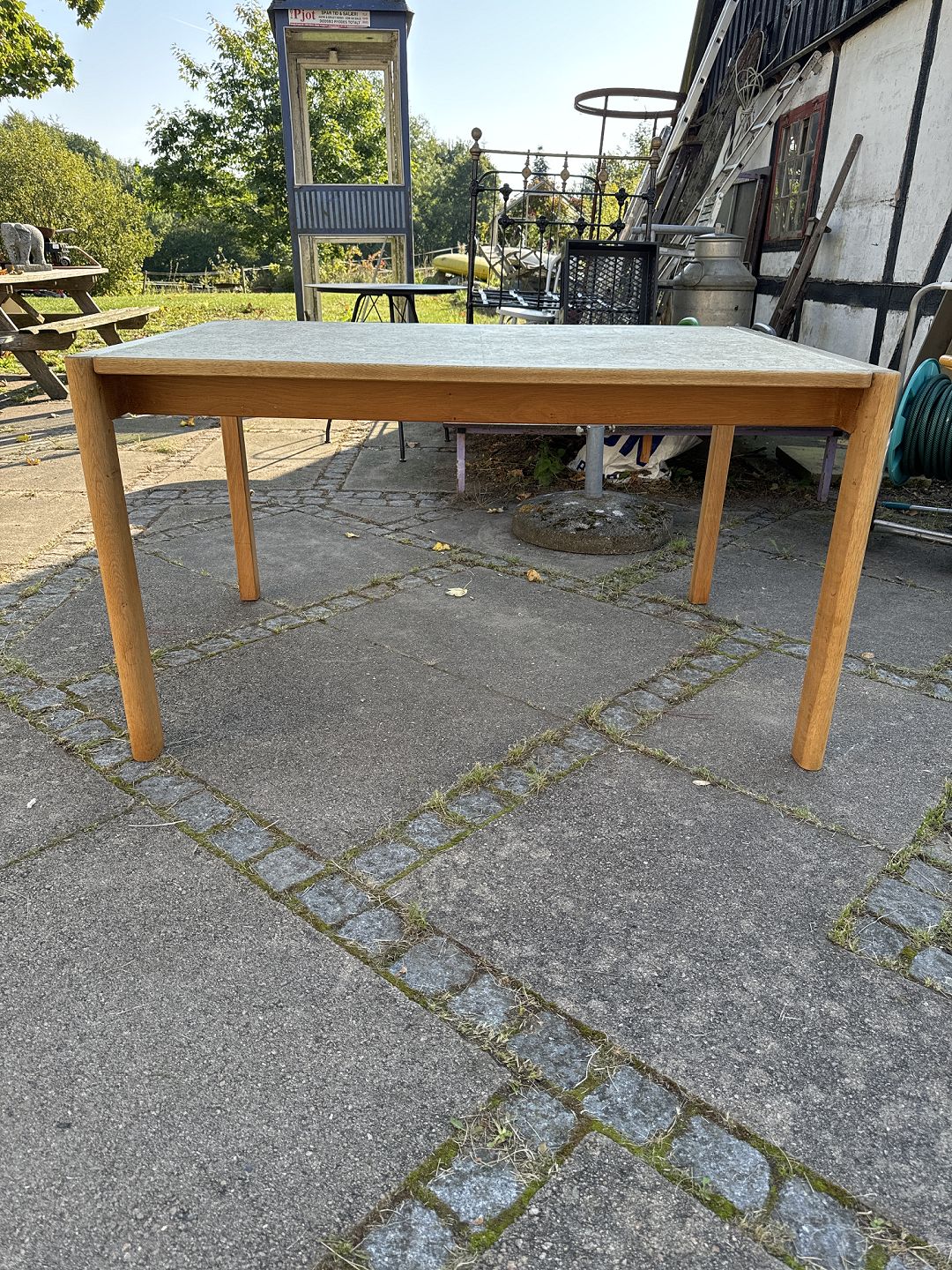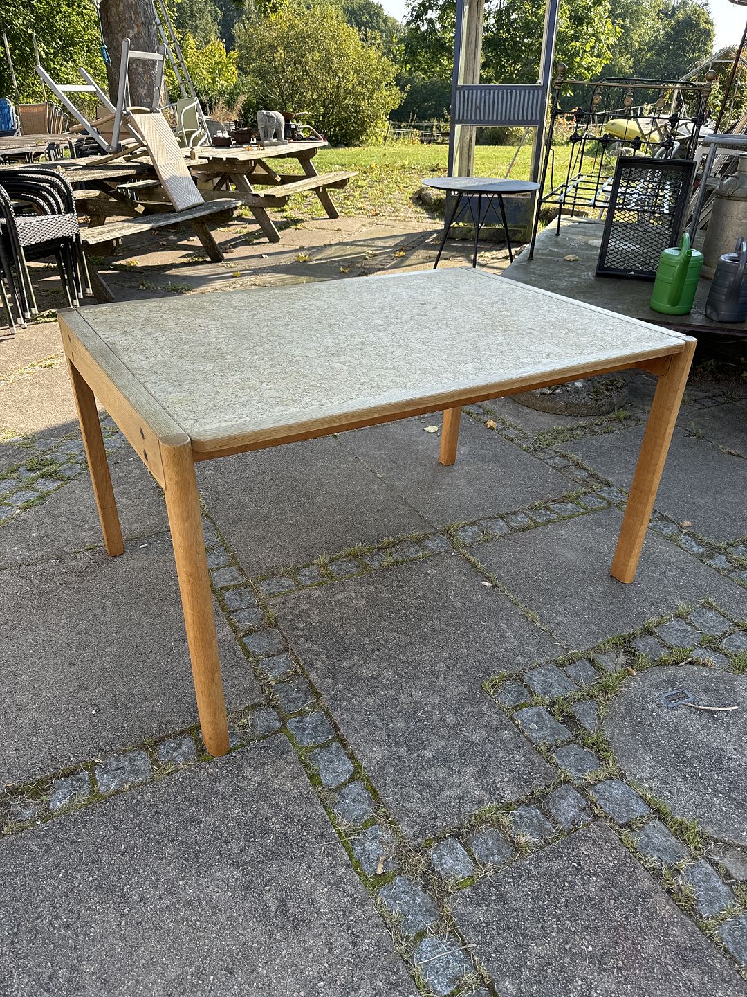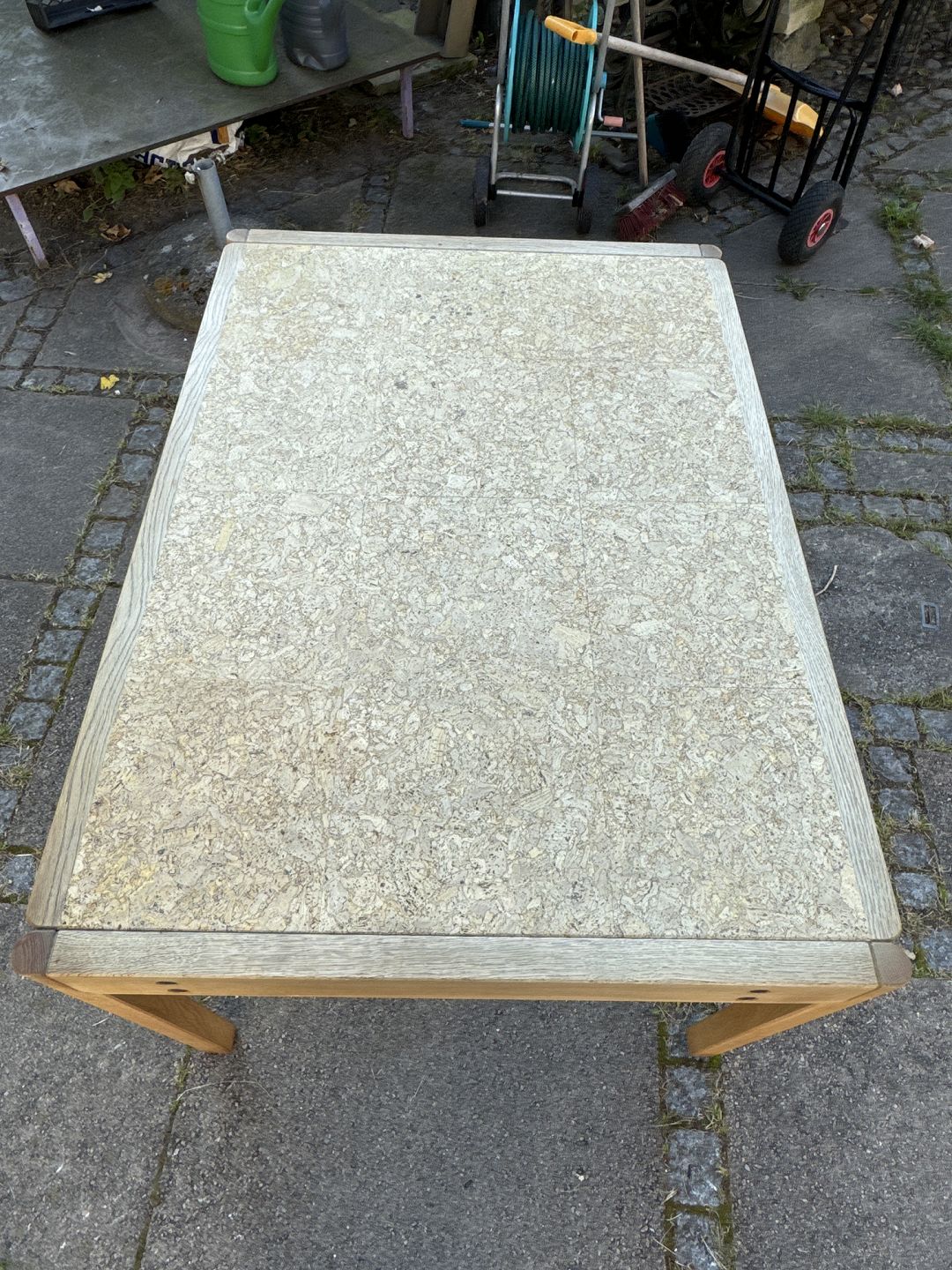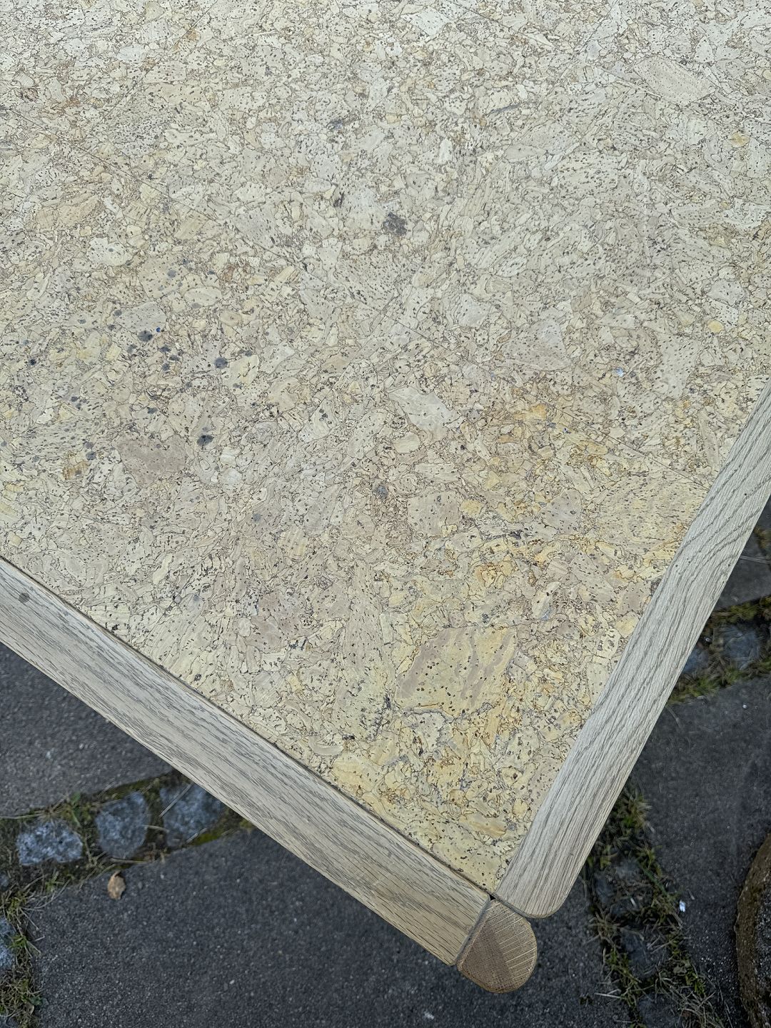 Jørgen Bækmark spisebord udført i eg med indlagt kork i pladen. Produceret af FDB og fremstillet i 1977 (stemplet herfra)