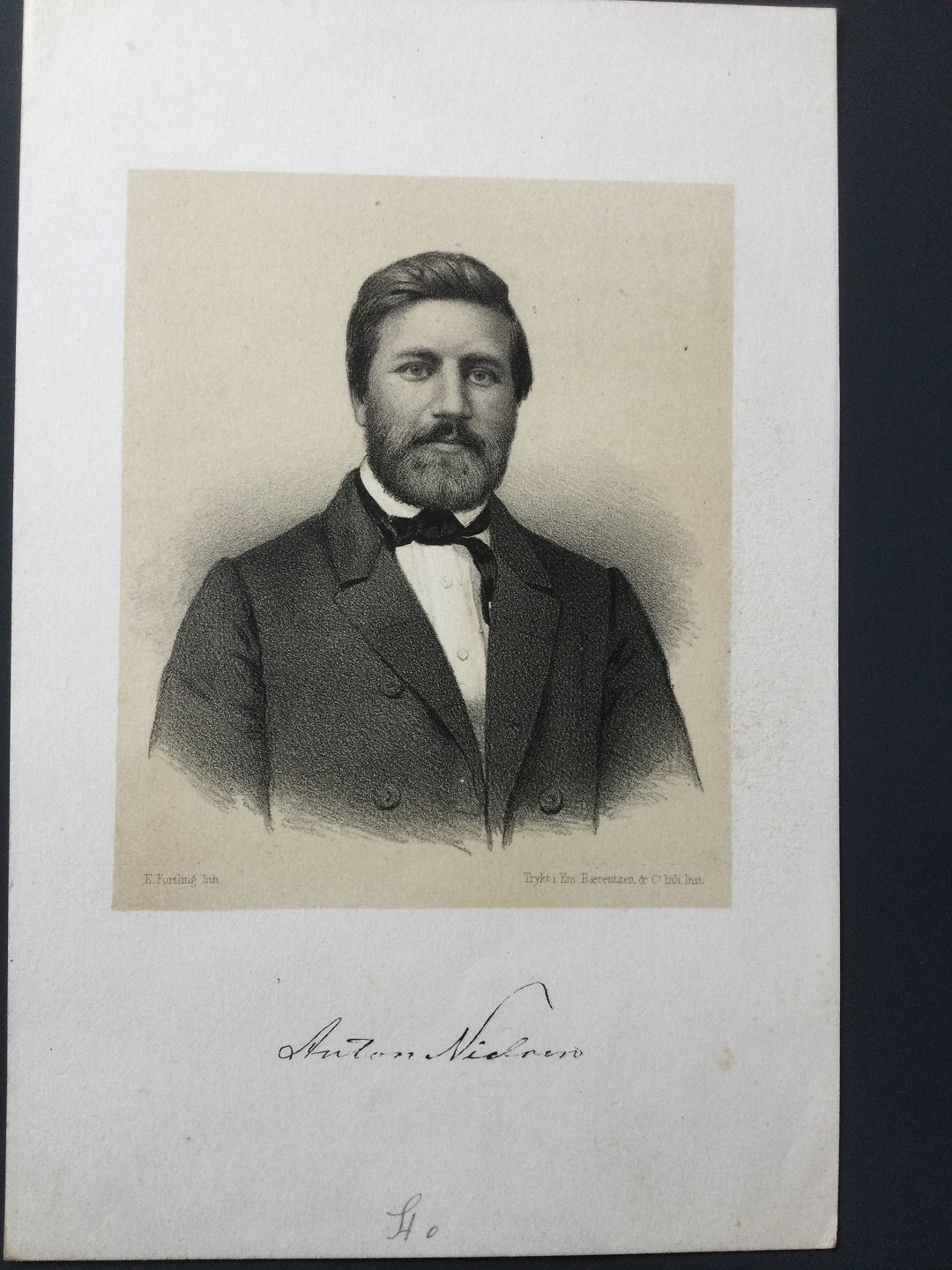 Litografi af Edvard Fortling - Portræt af Forfatter Anton Nielsen 1866.
