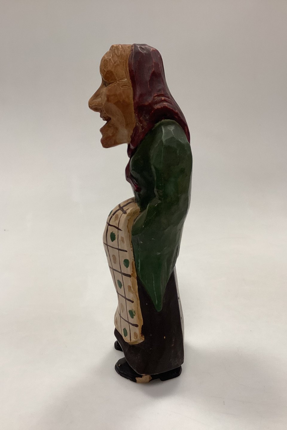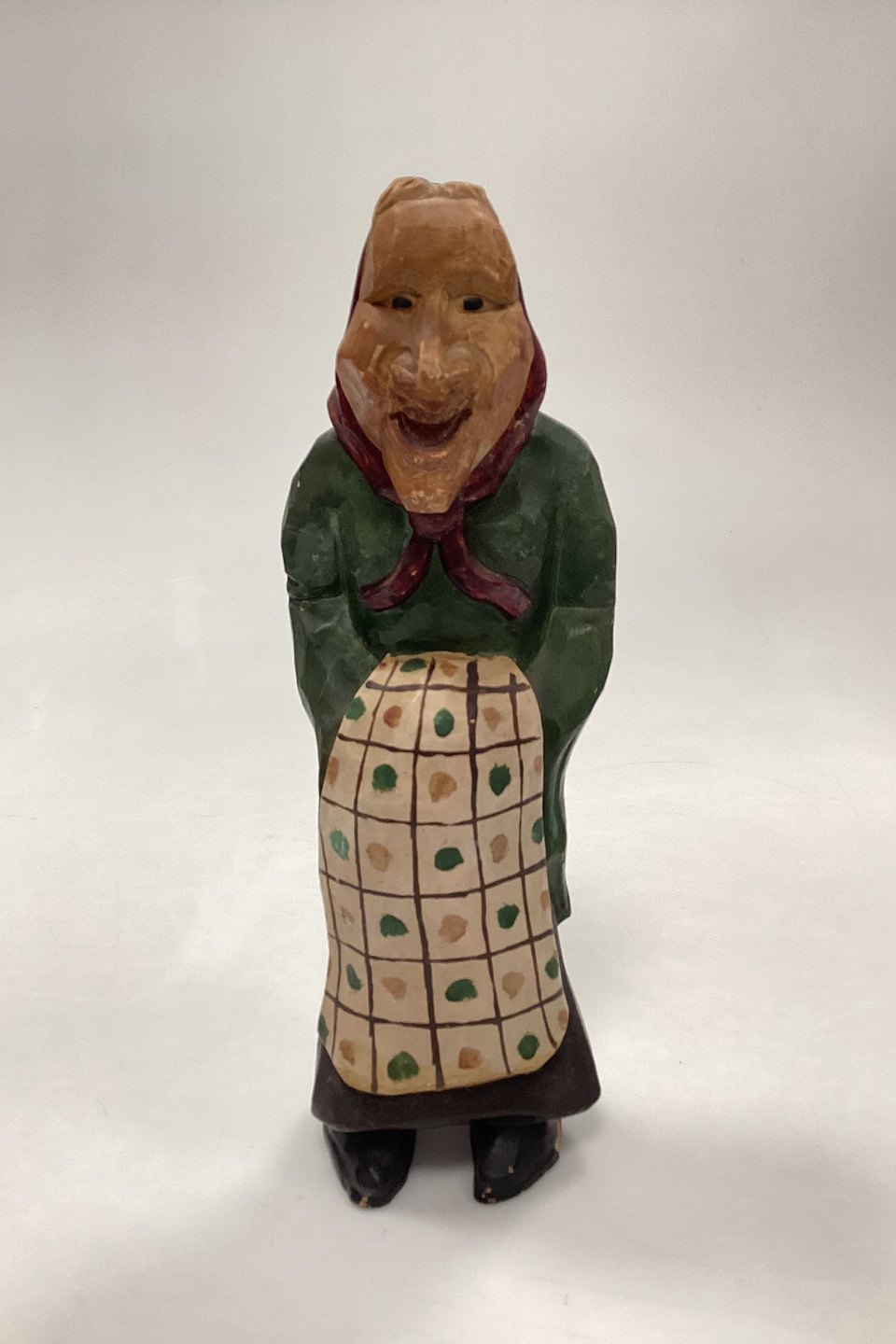 Kongens Lyngby Figur af Gammel Kone. Motivet er sandsynligvis en parafrase over den svenske kunstner Dödarhultarn´s træskårne figurer.