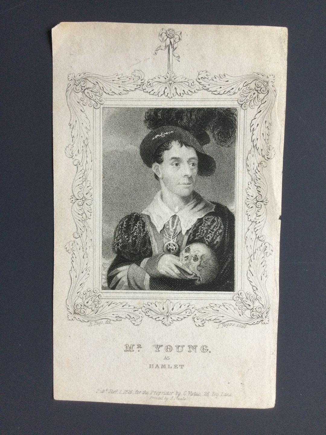 Kobberstik af John Rogers - Portræt af Skuespiller Charles Mayne Young som Hamlet 1826.