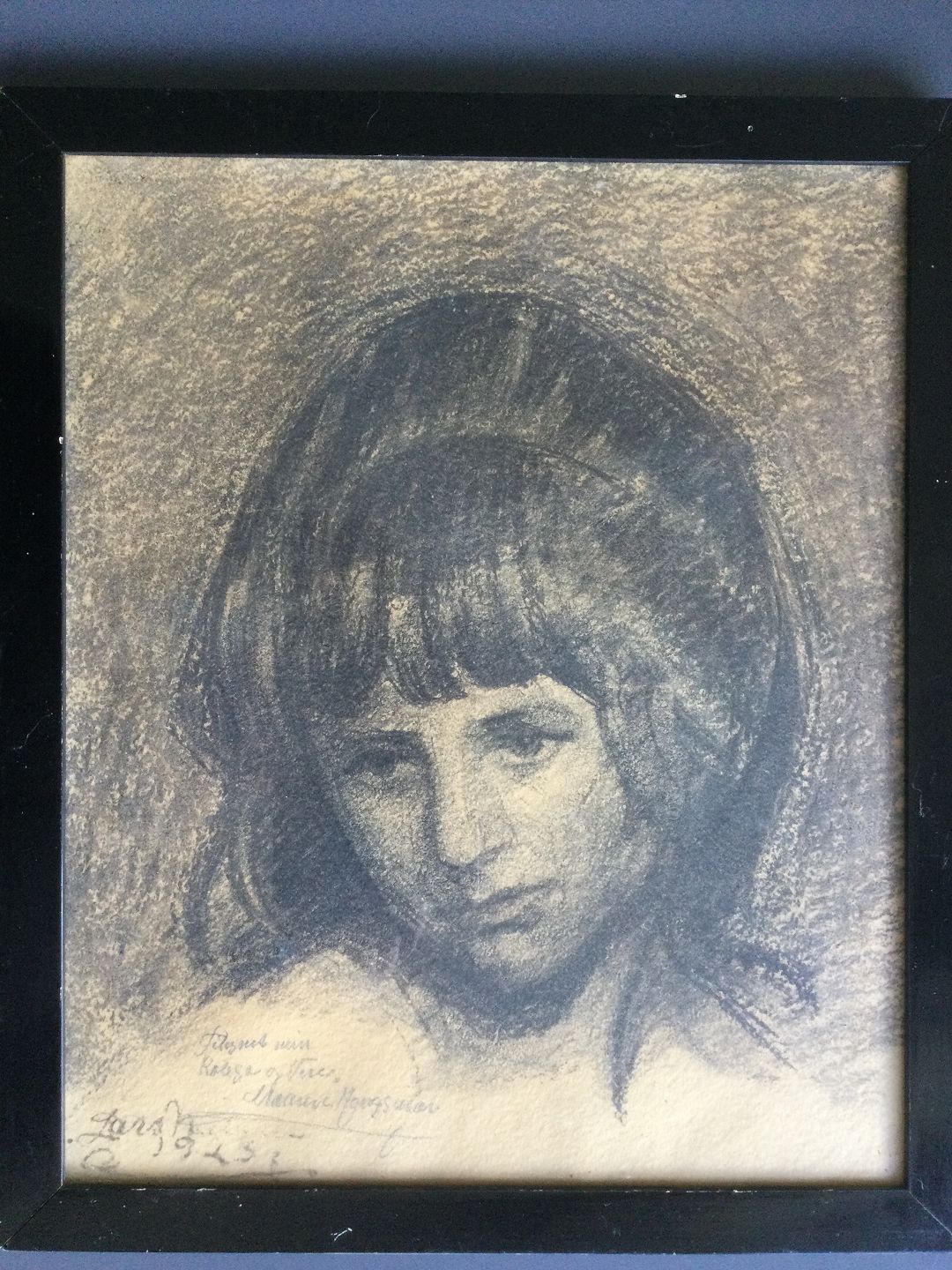 Tegning af Lars Nielsen - Pigeportræt 1925.