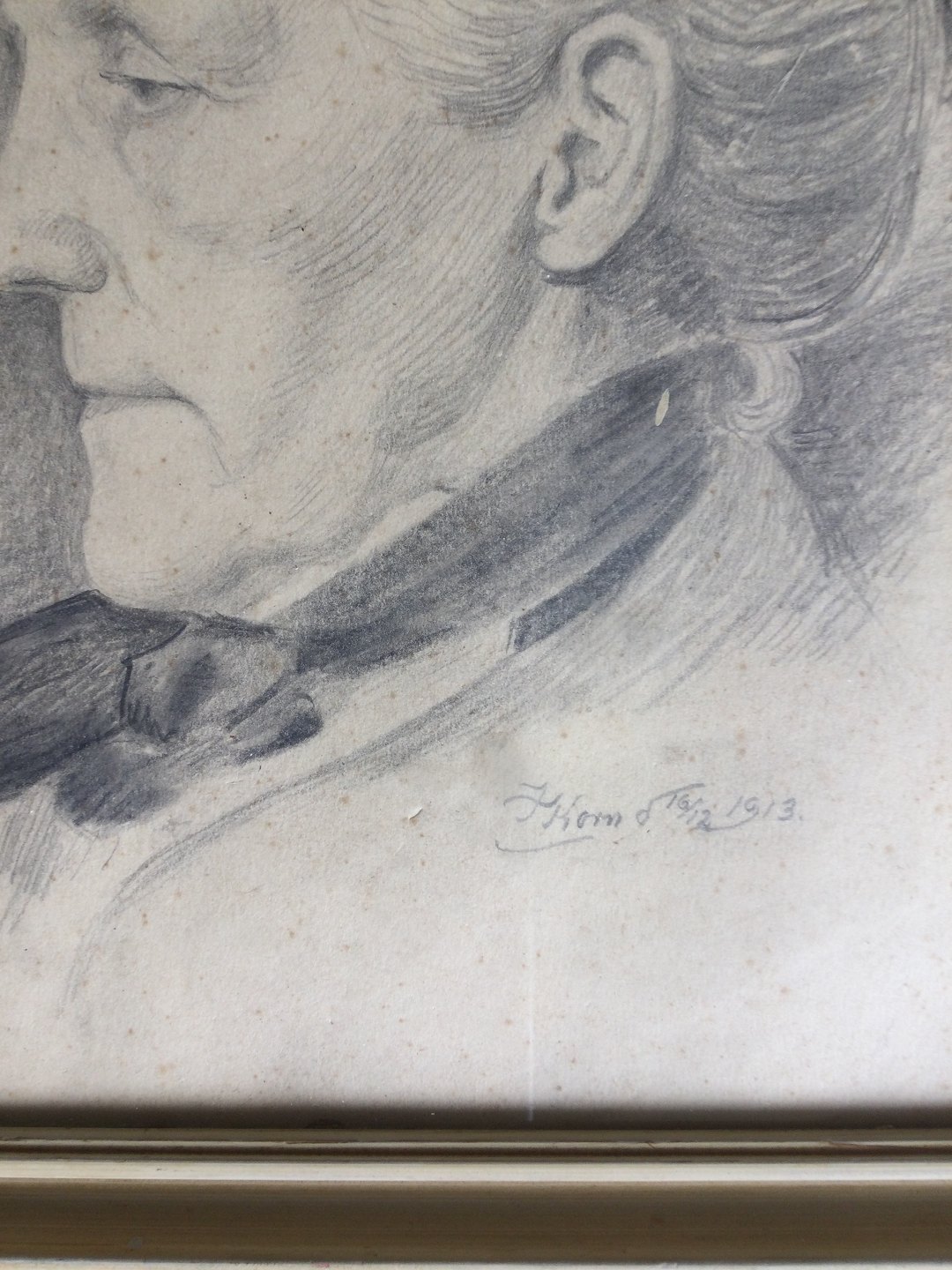 Tegning af Hans Jørgen Korn - Portræt af ældre kvinde 1913.