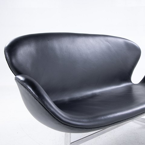 AJ 3321 - ‘Swan sofa’ in black leather with steel frame.