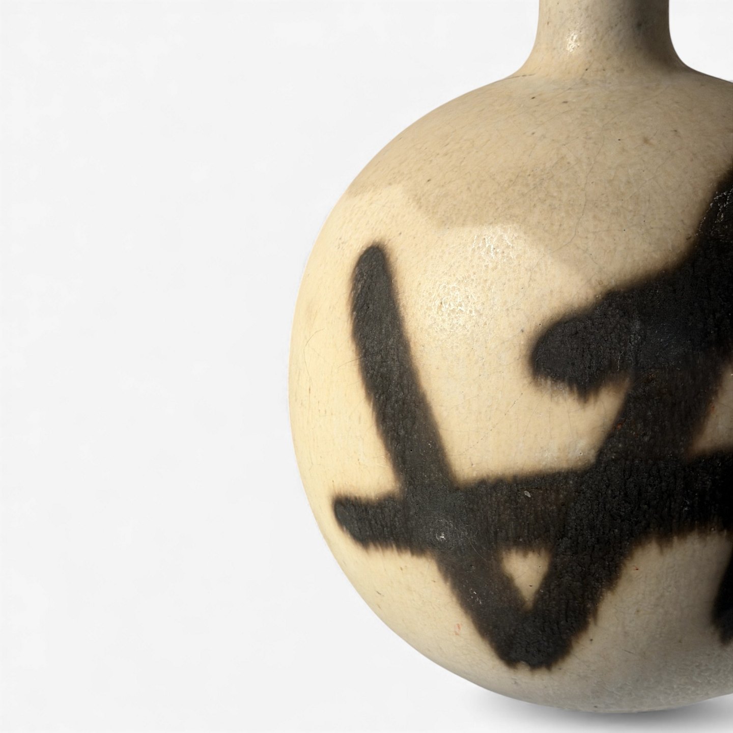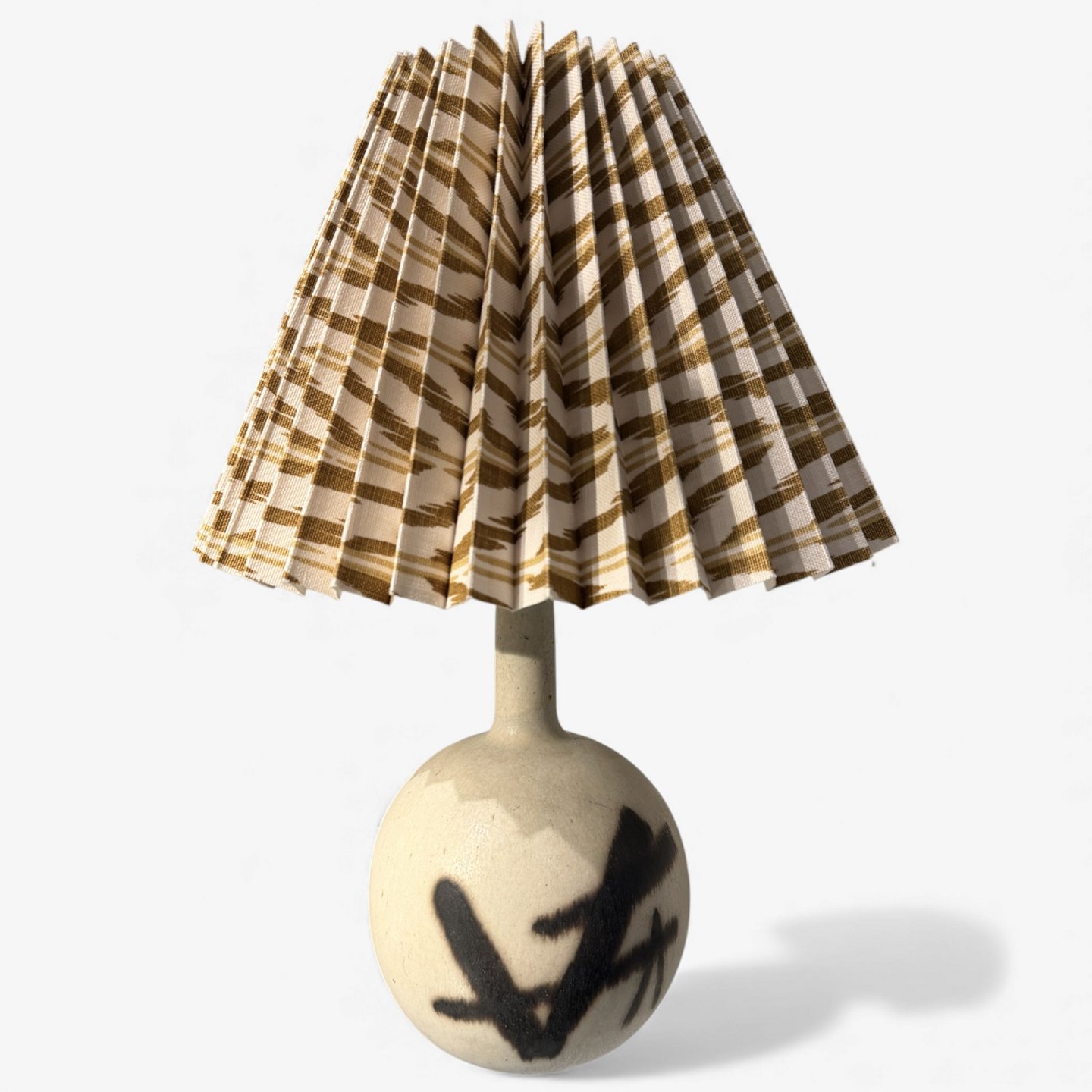 Bordlampe i stentøj m. sort mønster og ny skærm.