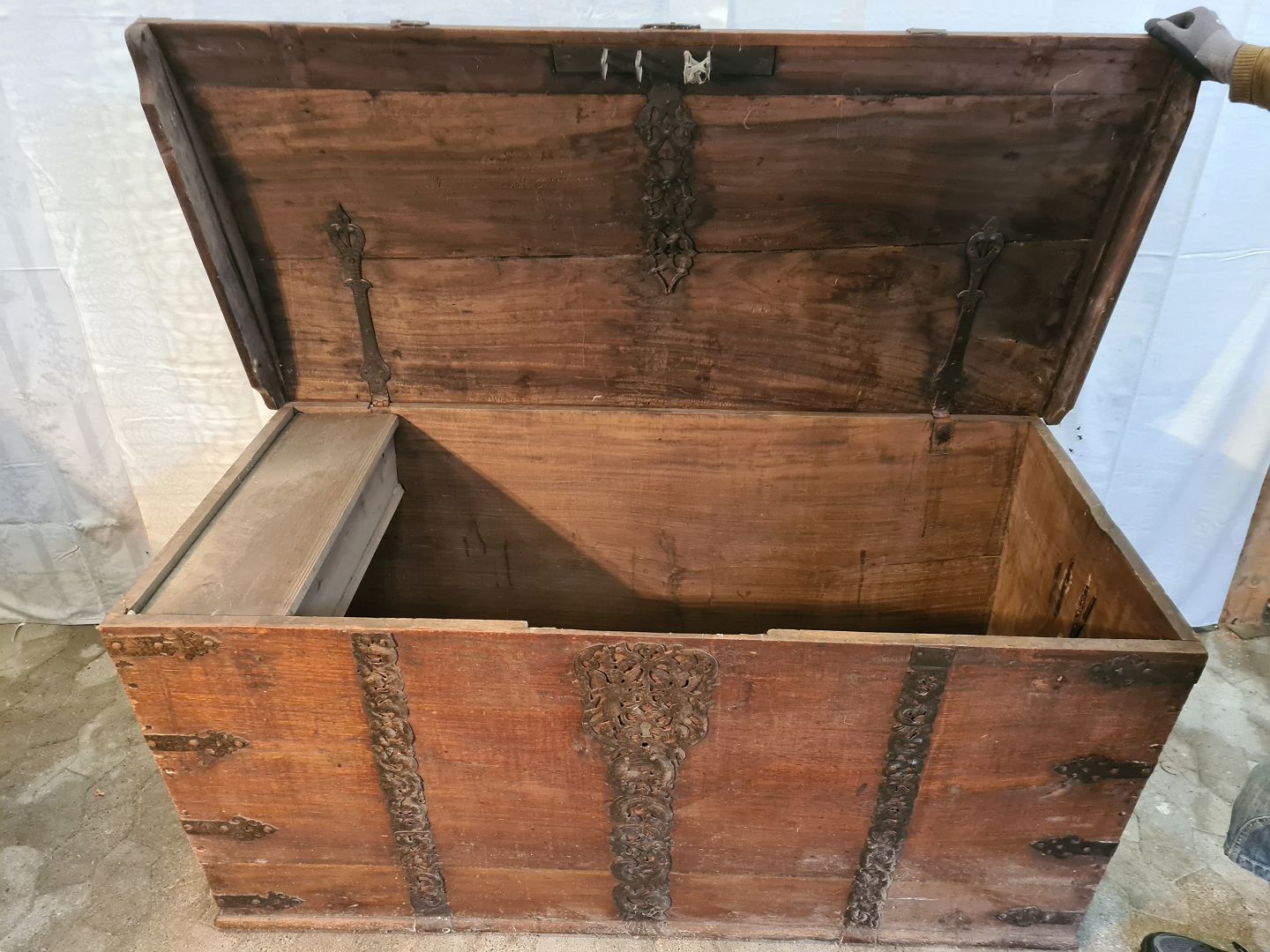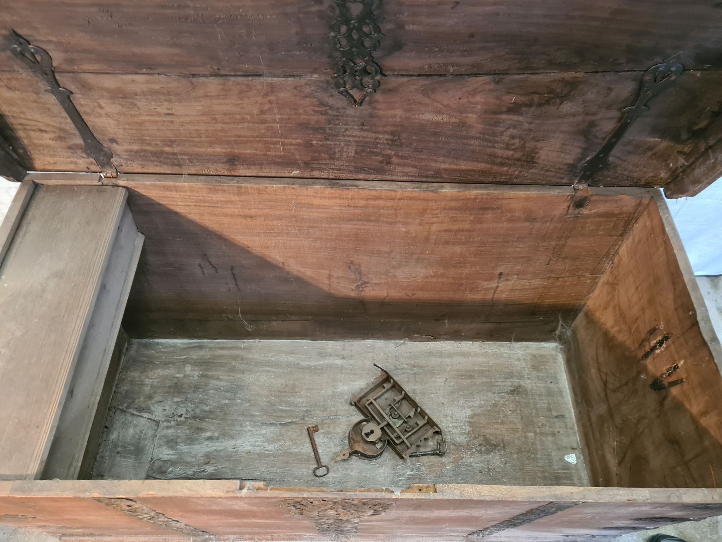 Kiste i massivt egetræ, fra 1850erne.